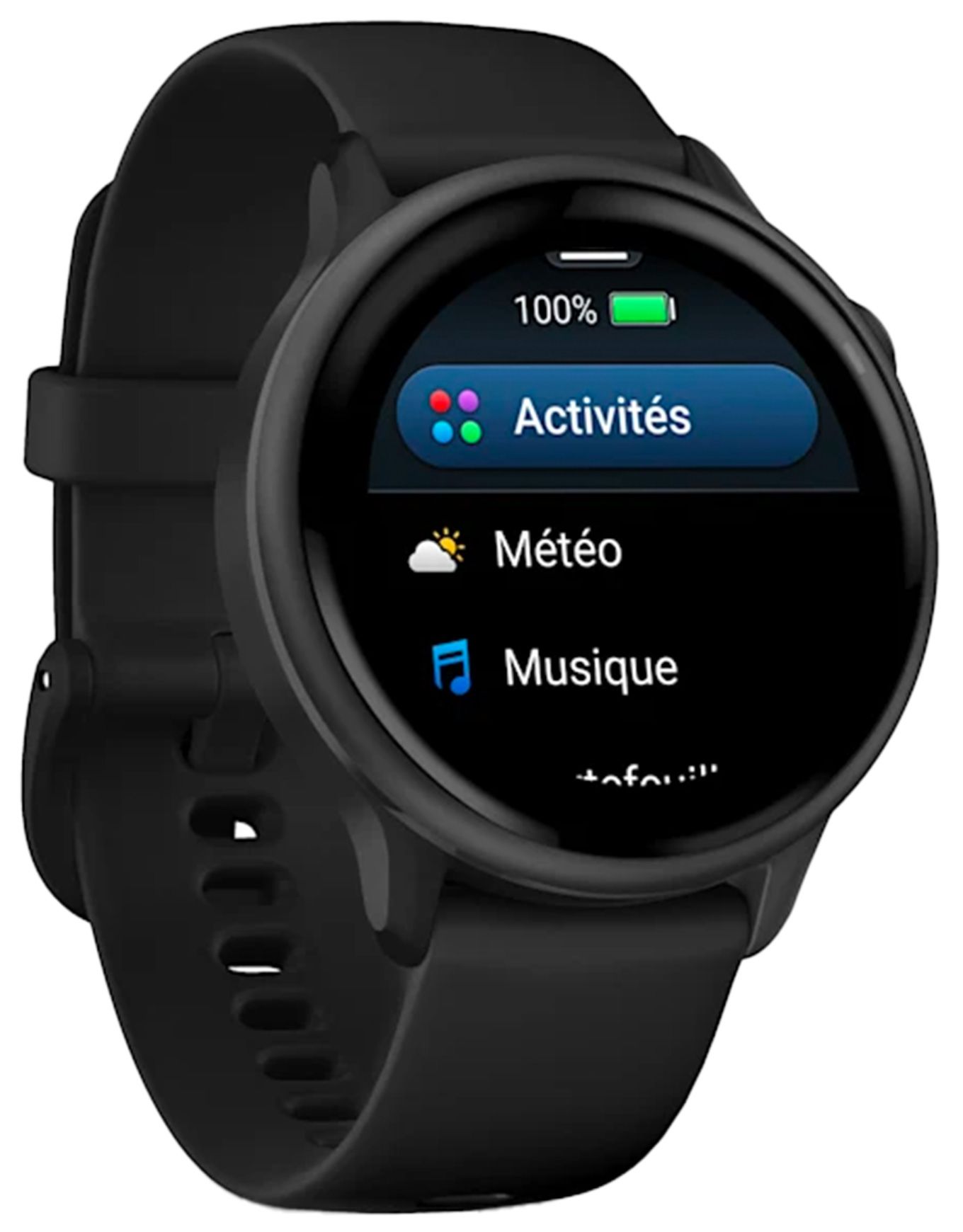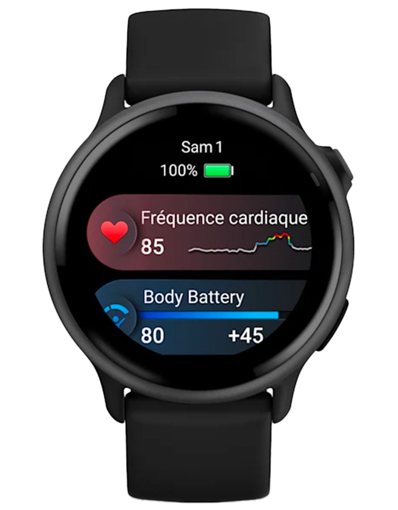 Au design contemporain et épuré, la Vivoactive 6 noire se fond dans chaque moment de votre quotidien, aussi bien au bureau qu’en salle de sport, en tant que montre connectée.