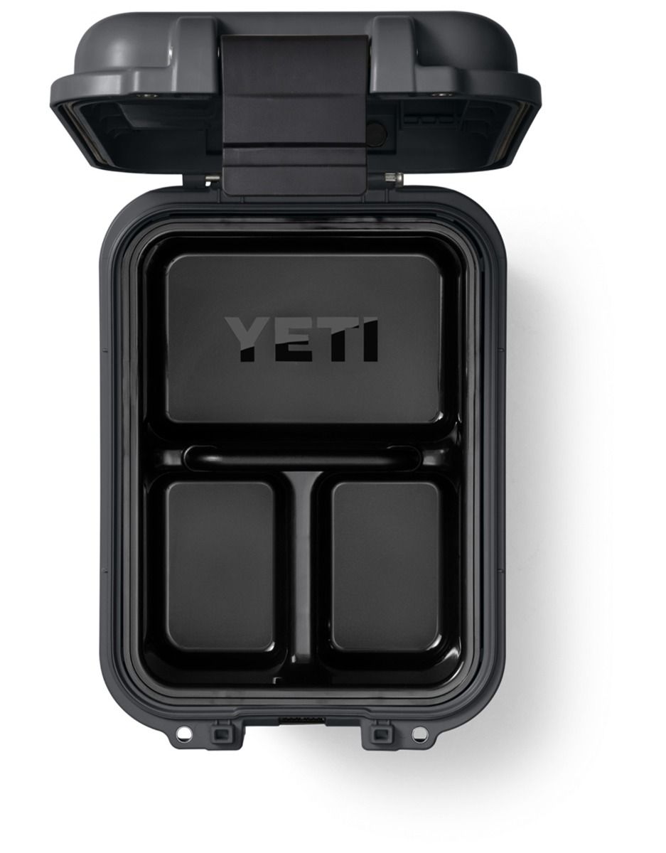 Coffret de rangement Yeti LoadOut Gobox 15 Charcoal, 15 L étanche IP65/IP67, quasi indestructible avec plateau amovible, poignées LipGrip™ et empilement Pack-and-Stack.