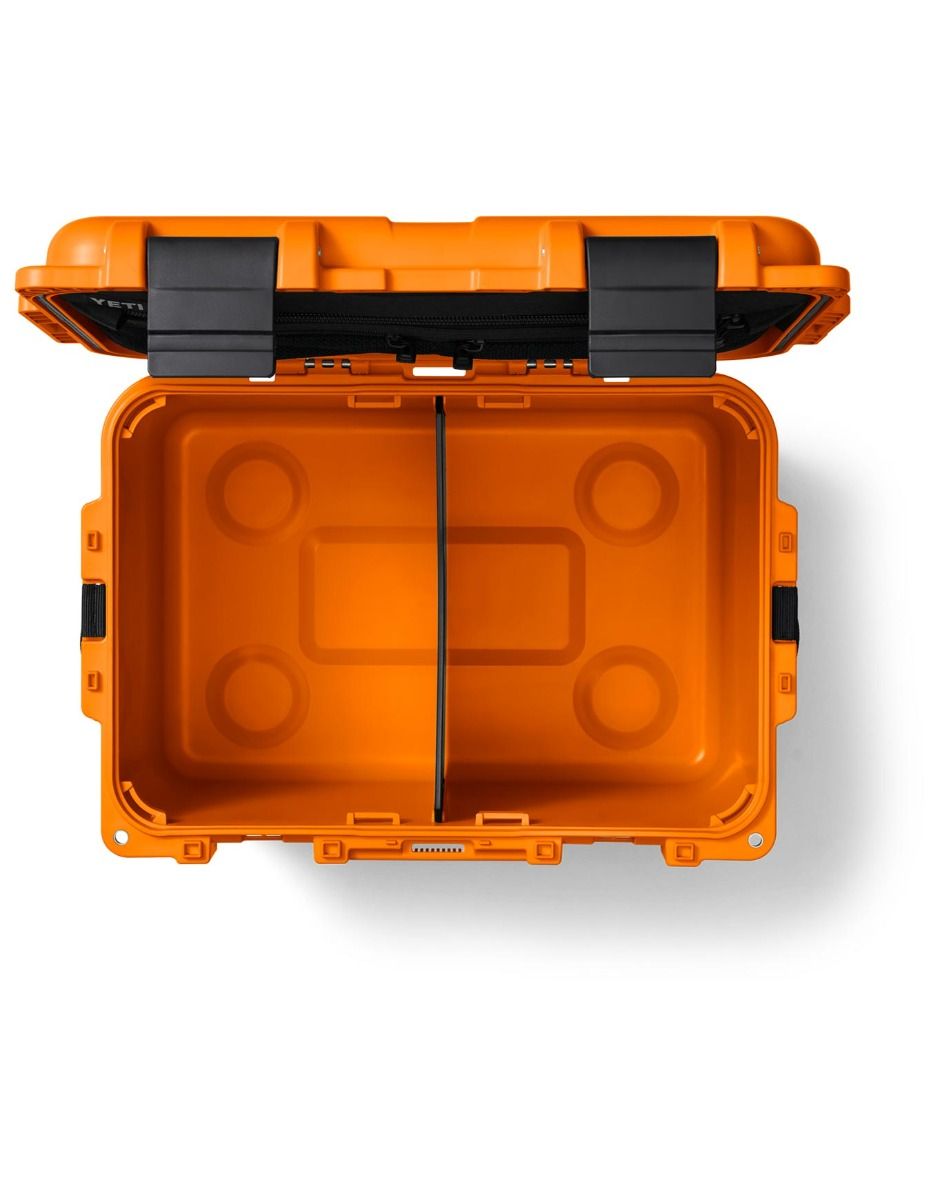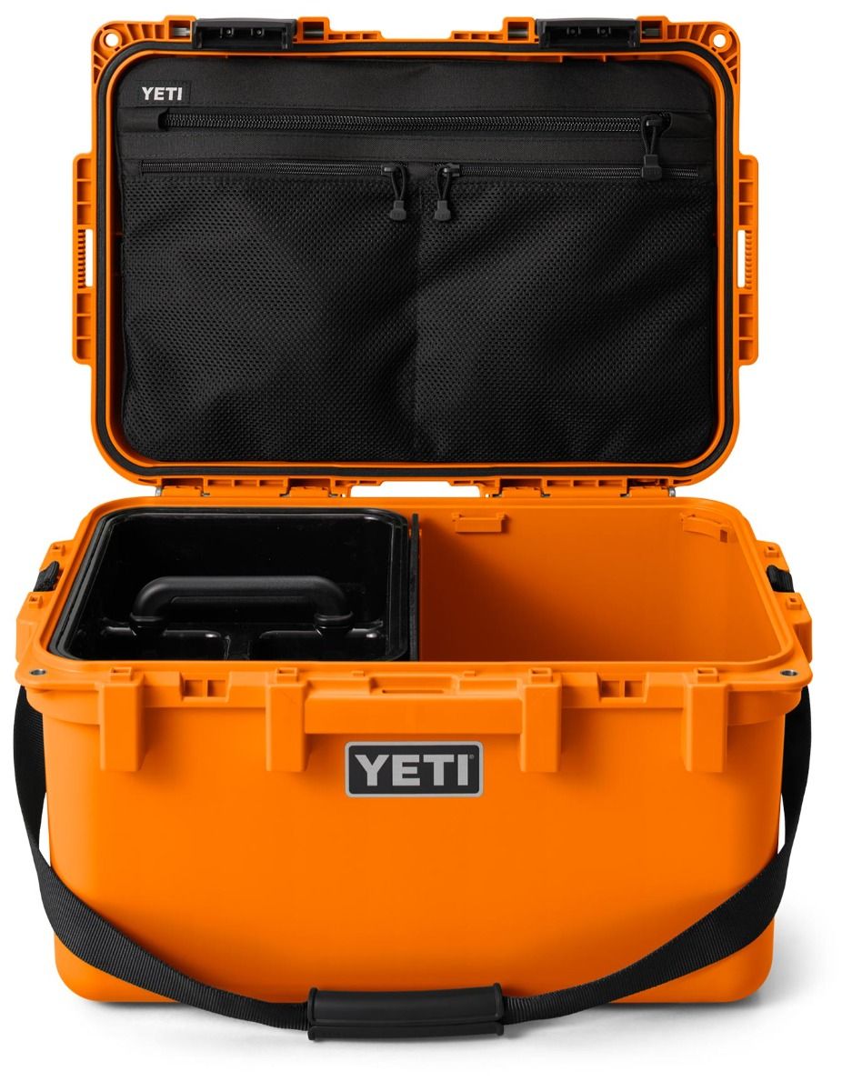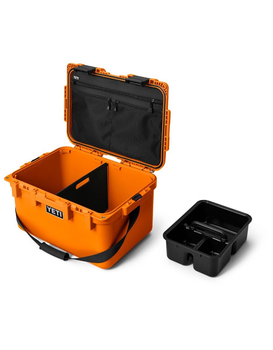 Coffret de rangement Yeti LoadOut Gobox 30 King Crab, 30 L, étanche IP67, rigide quasi indestructible, empilable, charnières NeverFail et poignées LipGrip pour transport sécurisé. Plateau amovible, compatibilité Pack-and-Stack, adapté aux environnements exigeants.