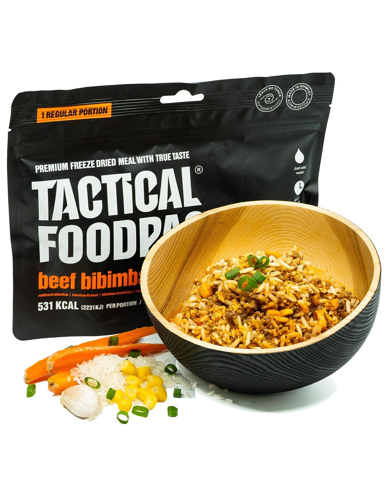 Le Bibimbap bœuf signé Tactical Foodpack est un plat déshydraté conçu pour fournir l’énergie et les nutriments indispensables durant de longues randonnées ou en contexte de survie. La lyophilisation préserve intégralement les arômes, les saveurs et les qualités nutritionnelles. En quelques minutes, réhydratez ce mets savoureux et retrouvez vos forces pour repartir à l’assaut des sommets. Ce mélange salé combine viande de bœuf fondante, riz et légumes, assaisonnés de gochujang et d’un filet de mayonnaise. Légers et compacts, ces sachets trouvent aisément leur place dans le sac et optimisent l’espace disponible. Découvrir les catégories associées Repas lyophilisés Matériel trekking et camping Alimentation/hydratation