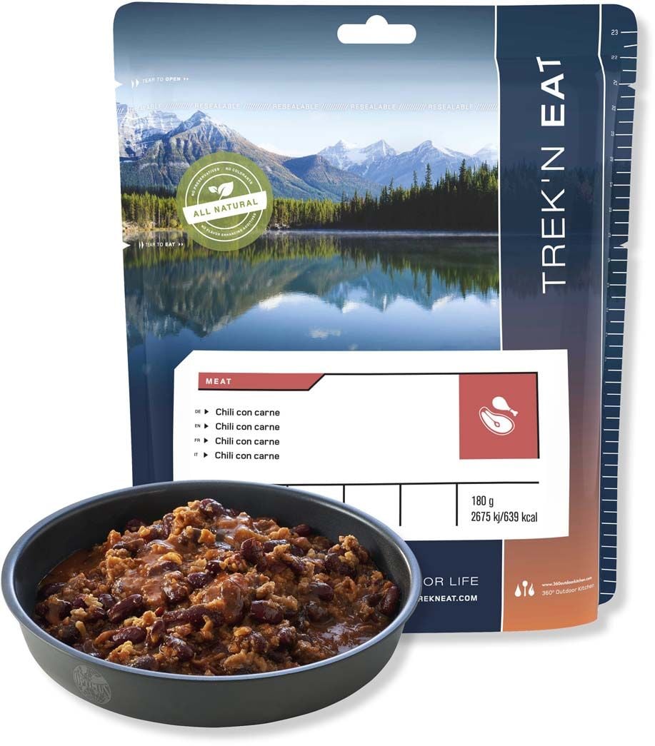 Le Chili Con Carne signé Trek’n Eat est un plat déshydraté conçu pour nourrir et réconforter lors de vos sorties en haute montagne ou vos longues marches. Cette recette restitue l’authenticité du chili traditionnel : haricots rouges, viande de bœuf et oignons viennent sublimer l’ensemble d’une pointe d’épices. Quelle que soit la météo, ce mets réchauffant redonne le moral et de l’énergie. Dégluti bien chaud, il aide à repousser le froid, cale l’estomac creux et, chose étonnante, aide même à dégourdir les pieds gelés. Découvrir les catégories associées Repas lyophilisés Matériel trekking et camping Alimentation/hydratation