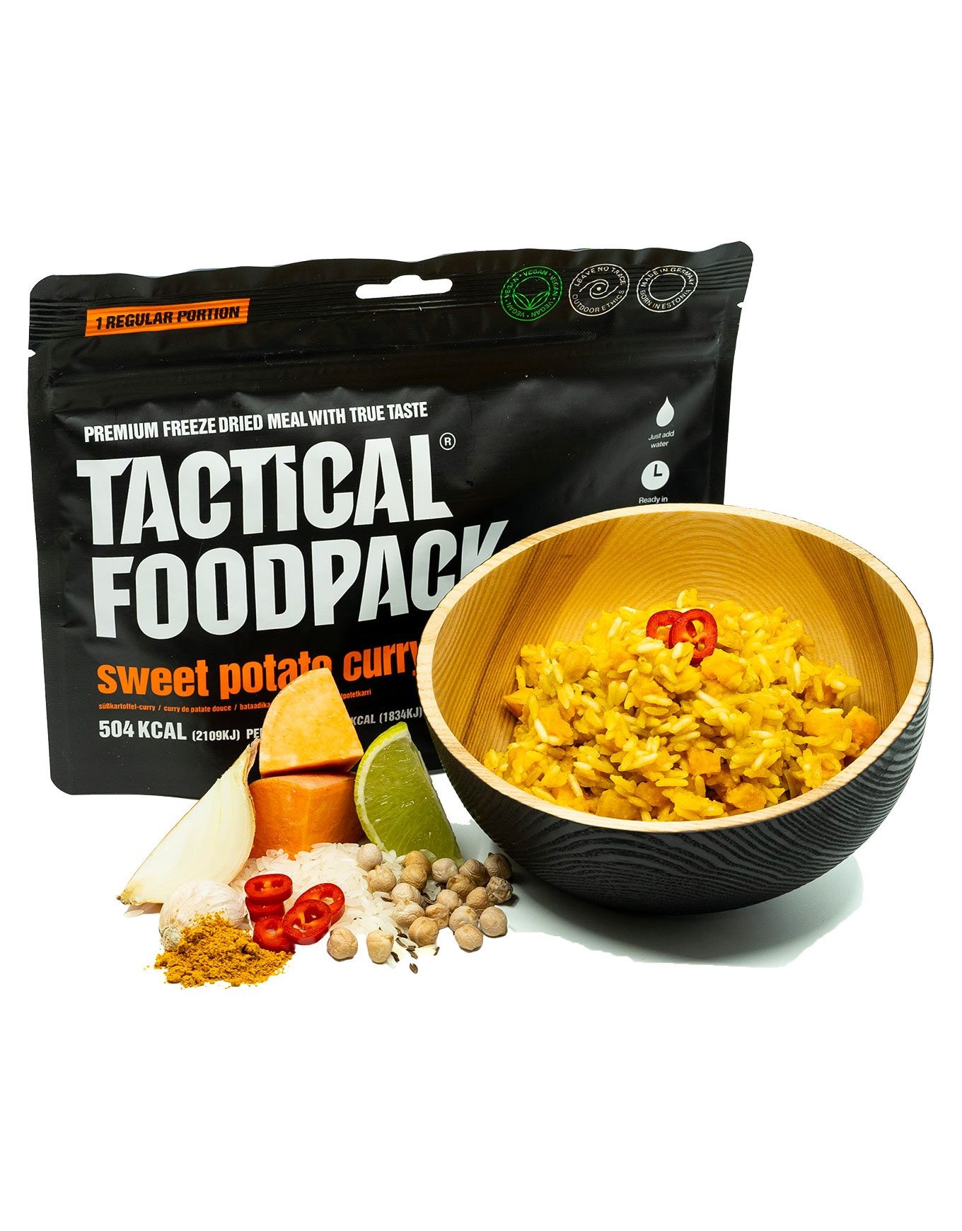 Ce paquet de 115 g de Curry aux patates douces signé Tactical Foodpack est un plat déshydraté conçu pour vous fournir l’énergie et les nutriments essentiels lors de longues randonnées ou en contexte de survie. Grâce à la lyophilisation, les arômes, les textures et les propriétés nutritives sont intégralement conservés. Préparez ce mets savoureux en seulement quelques minutes et retrouvez vos forces pour poursuivre votre route. Ce repas végétarien à base de coco, tomates, oignons et citron vert est sublimé par une pointe de gingembre, curcuma et cumin. Légers et compacts, ces sachets se faufilent aisément dans votre sac de rando et vous font gagner un espace précieux. Découvrir les catégories associées Repas lyophilisés Matériel trekking et camping Alimentation/hydratation