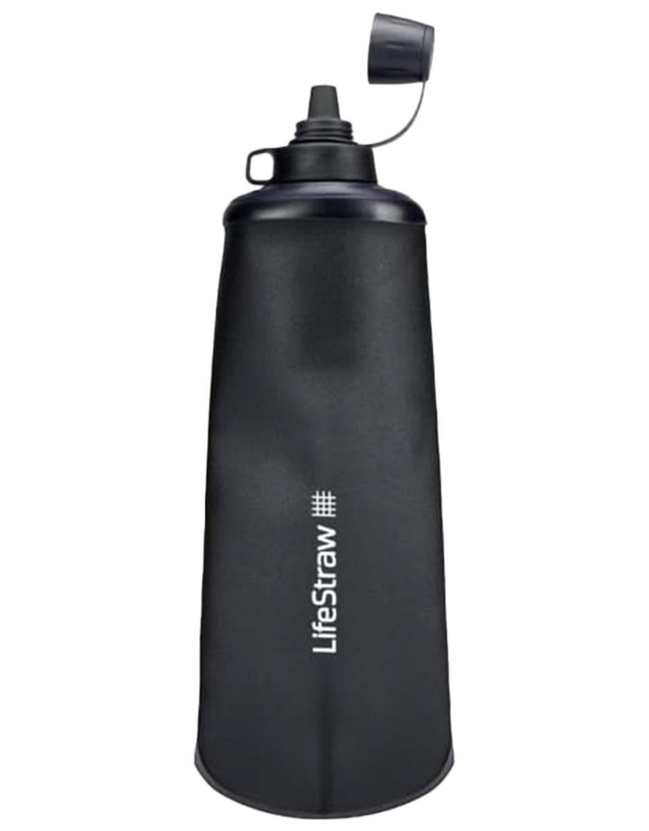 La Flex Basic Peak Serie 1L Dark Grey est une flasque filtrante de la marque LifeStraw. La flasque et le microfiltre, pesant seulement 110 g et filtrant jusqu’à 2000 L, peuvent être dissociés : cette modularité offre la possibilité d’employer le filtre à la manière d’une paille purificatrice ou d’un système de purification adaptable à divers récipients, qu’il s’agisse d’une gourde classique ou d’une poche hydratation Hydrapak.