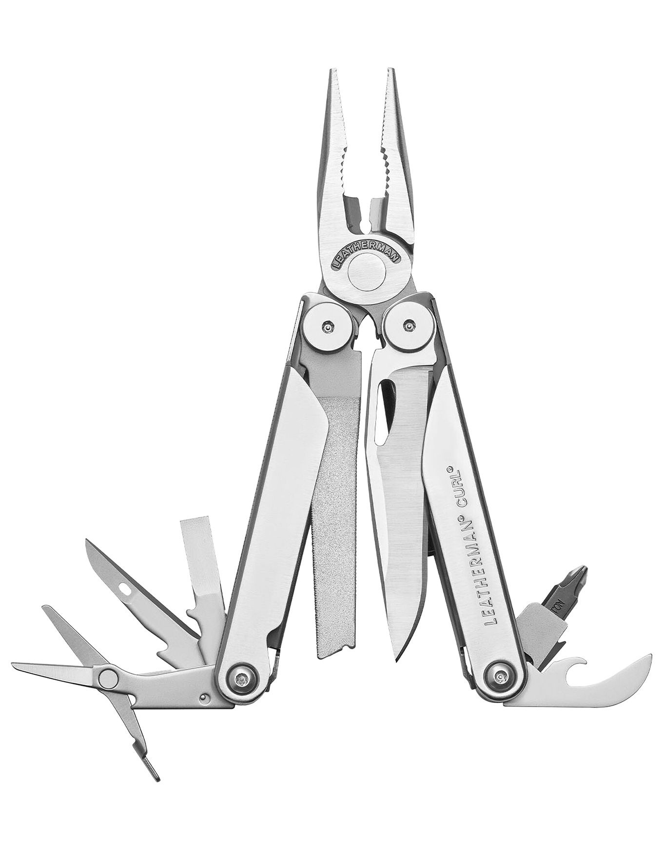 Leatherman Curl outil multifonction 15 fonctions : pince coupe-câble, couteau 420HC, lime bois/métal, manipulation d’une main, clip de poche.