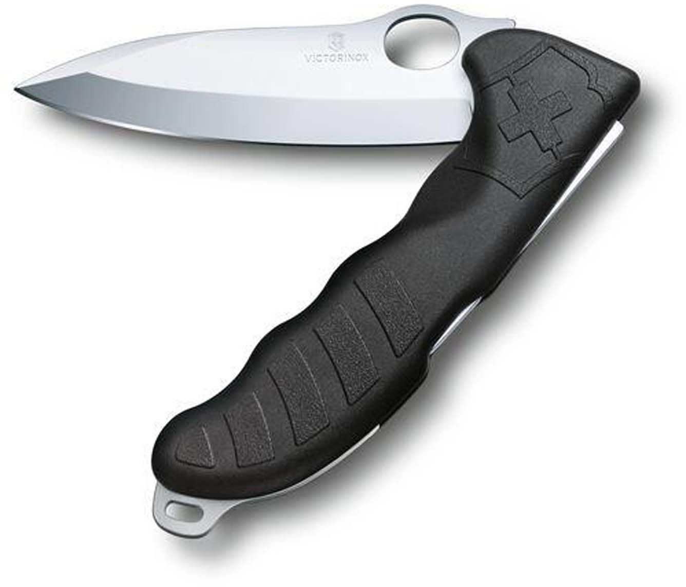 Victorinox Hunter Pro : couteau de poche à lame verrouillable, ouverture d’une main, étui ceinture inclus, pratique bivouac, randonnée et camping.