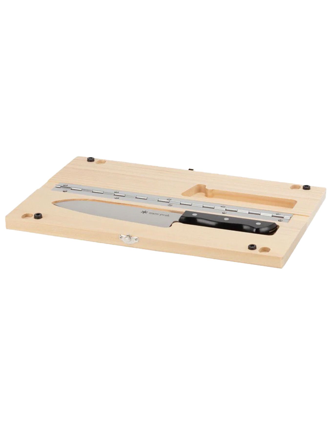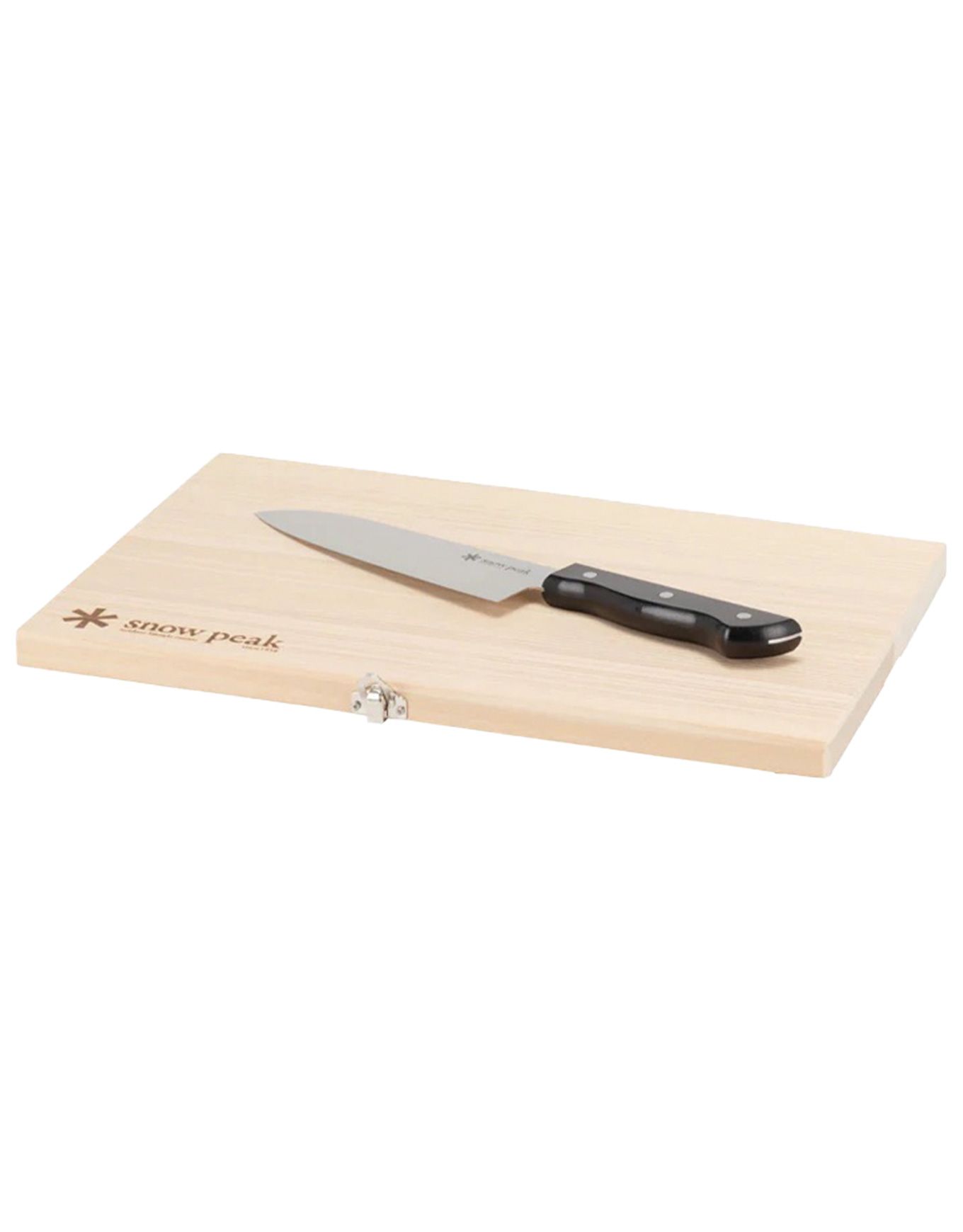 L’ensemble de découpe Chopping Board Set Large de Snow Peak combine une planche pliable en bouleau et un couteau inox performant, compact et sécurisé par aimant pour cuisine outdoor.