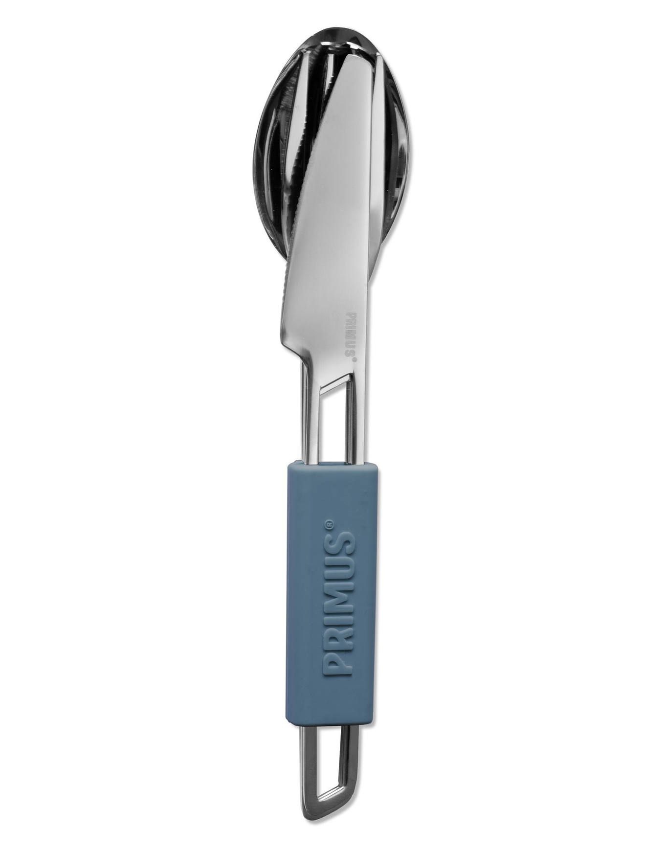 Proposé par la marque suédoise Primus, le kit Deep Blue comprend une cuillère, un couteau et une fourchette réalisés en acier 18/8 au design sobre. Leur étui en silicone permet un emboîtement aisé des trois éléments, offrant une compacité optimale une fois rangés dans le sac à dos. Résistant et d’un nettoyage immédiat, cet ensemble de couverts accompagnera efficacement tous les repas en bivouac ou sous tente. Découvrir les catégories associées Matériel cuisine Matériel trekking et camping Cuisine