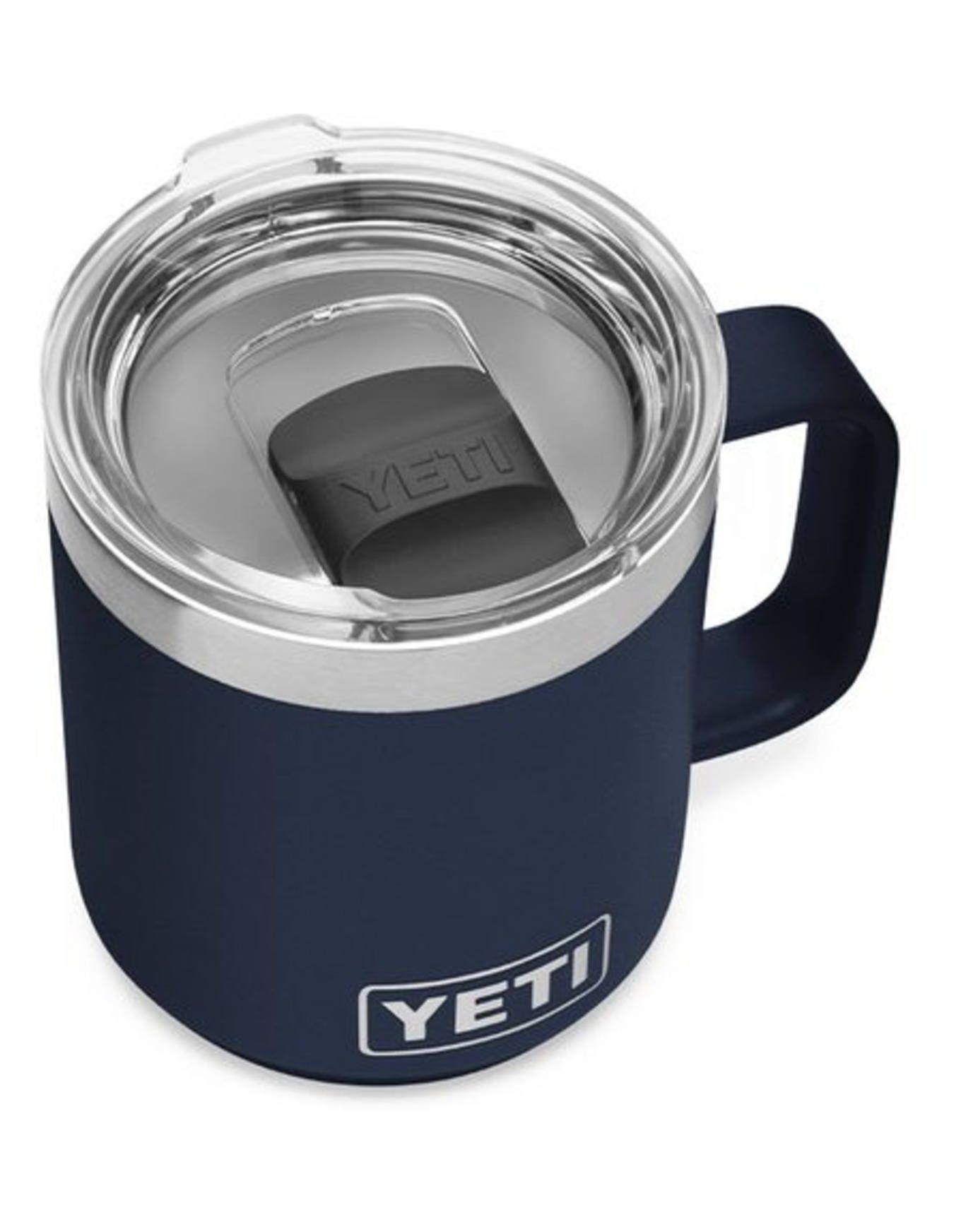 La tasse isotherme Yeti Rambler 10 Oz Navy conserve 295 ml de boisson chaude ou froide des heures grâce à son acier inoxydable double paroi sous vide; poignée 360° soudée, finition DuraCoat™ robuste, empilable et lave-vaisselle.
