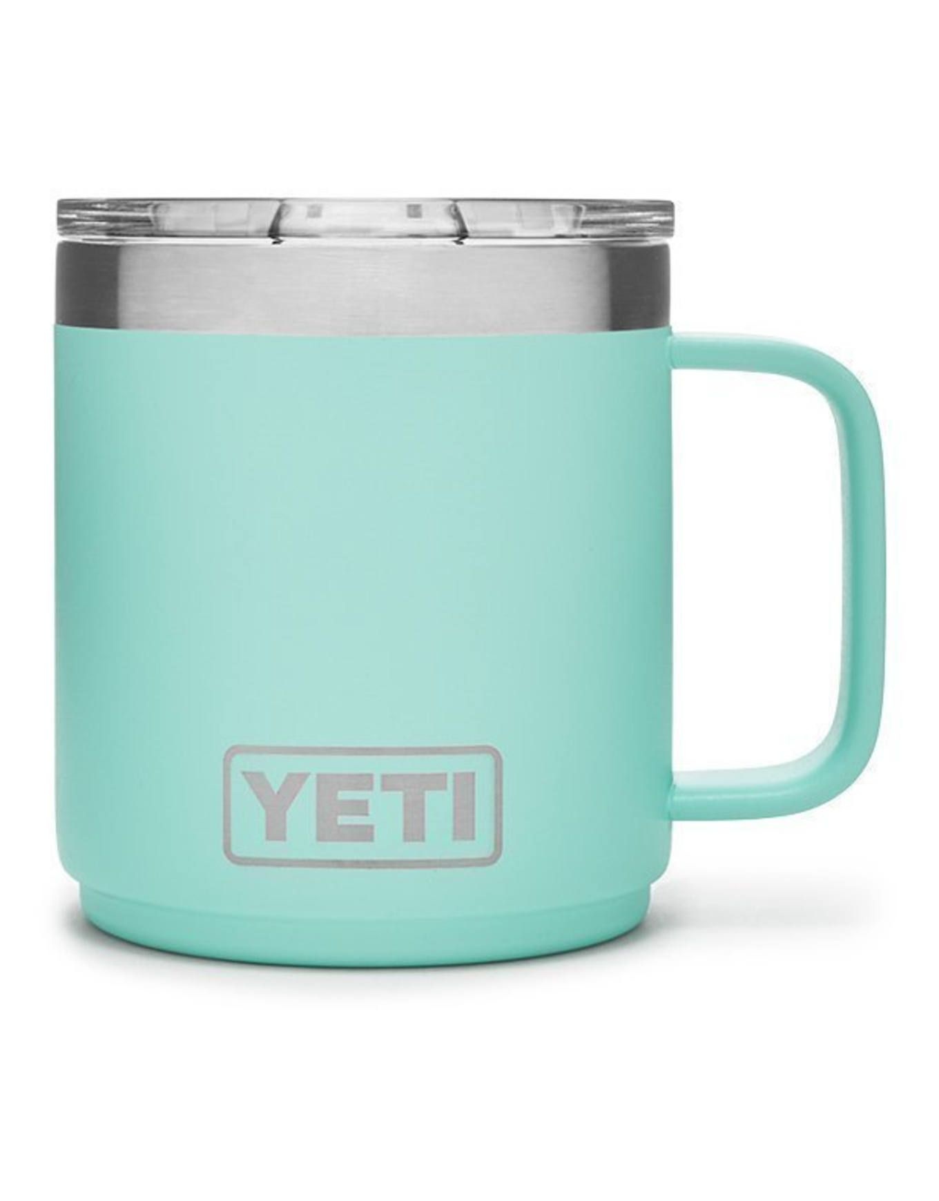 Yeti Rambler 10 Oz Mug Seafoam : tasse isotherme 295 ml en acier inoxydable DuraCoat™ avec isolation double paroi pour maintenir la température des boissons. Empilable, compatible lave-vaisselle, idéale bivouac, trekking, road trip.