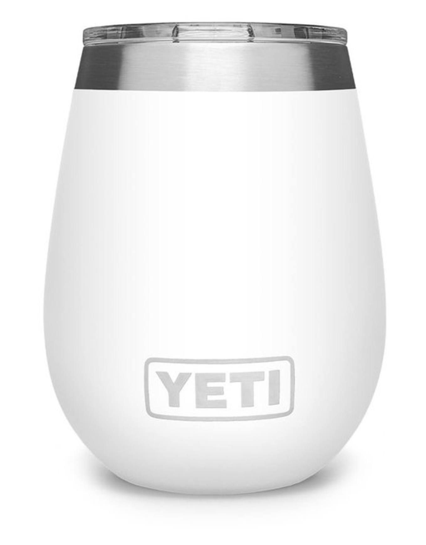 Le Rambler 10 Oz Wine Tumbler White de Yeti est un verre à vin en acier inoxydable 18/8 avec isolation double paroi et couvercle MagSlider™ pour maintenir la température idéale.