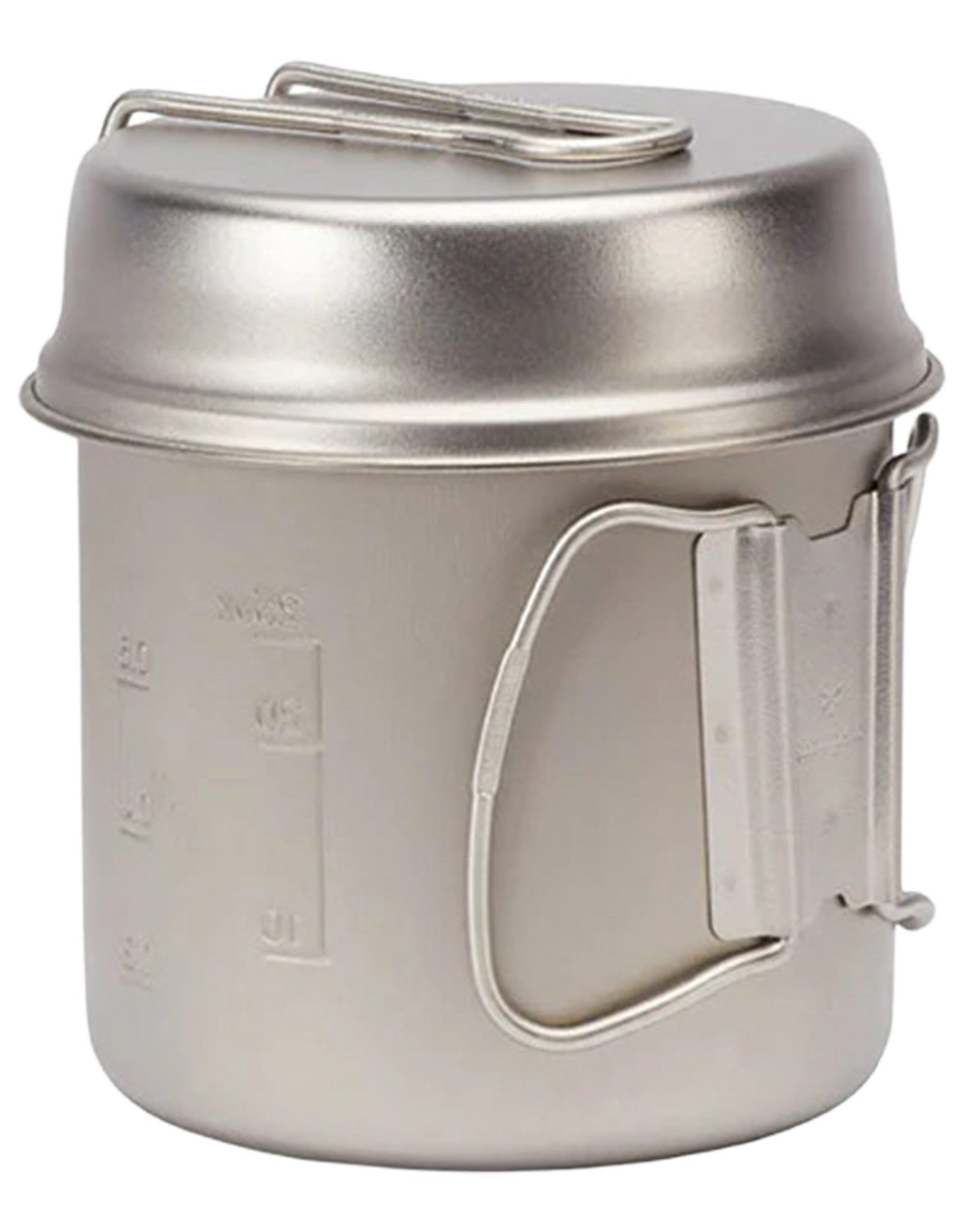 Casserole Snow Peak Titanium Trek 900 en titane, 175 g, conçue pour cuisiner en solo : compacte, légère, compatible avec réchaud et popotes 700/1400 pour un système de cuisine modulable.