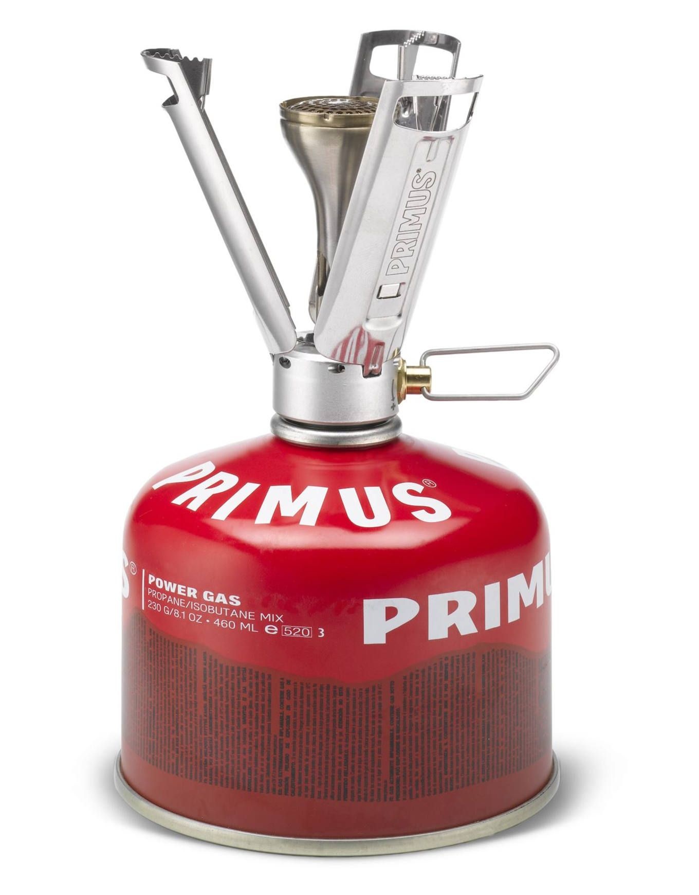Réchaud de trekking Primus Firestick Stove ultra-compressible, puissance 2500 W pour bouillir 1 L d’eau en 4 min 30, allumage Piezo, compatible cartouches gaz, housse laine doublée.