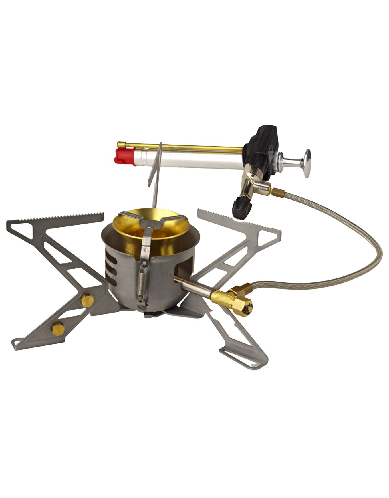 Le réchaud multicombustible Primus Multifuel III fonctionne avec essence, diesel, kérosène, gaz ou paraffine, délivre 2700 W pour faire bouillir 1 L d’eau en 4 min et se plie compactement pour les expéditions extrêmes.
