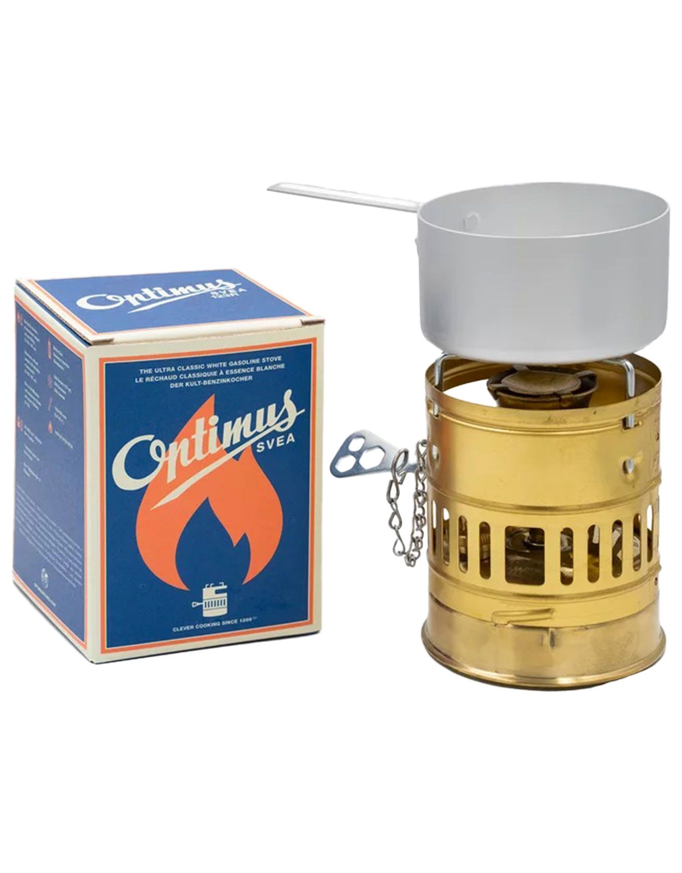 Réchaud à essence Optimus Svea, léger et compact, conçu pour alpinistes et grimpeurs. Brûleur breveté à amorçage rapide, flamme réglable, aiguille Magic™ autonettoyante, casserole emboîtable.