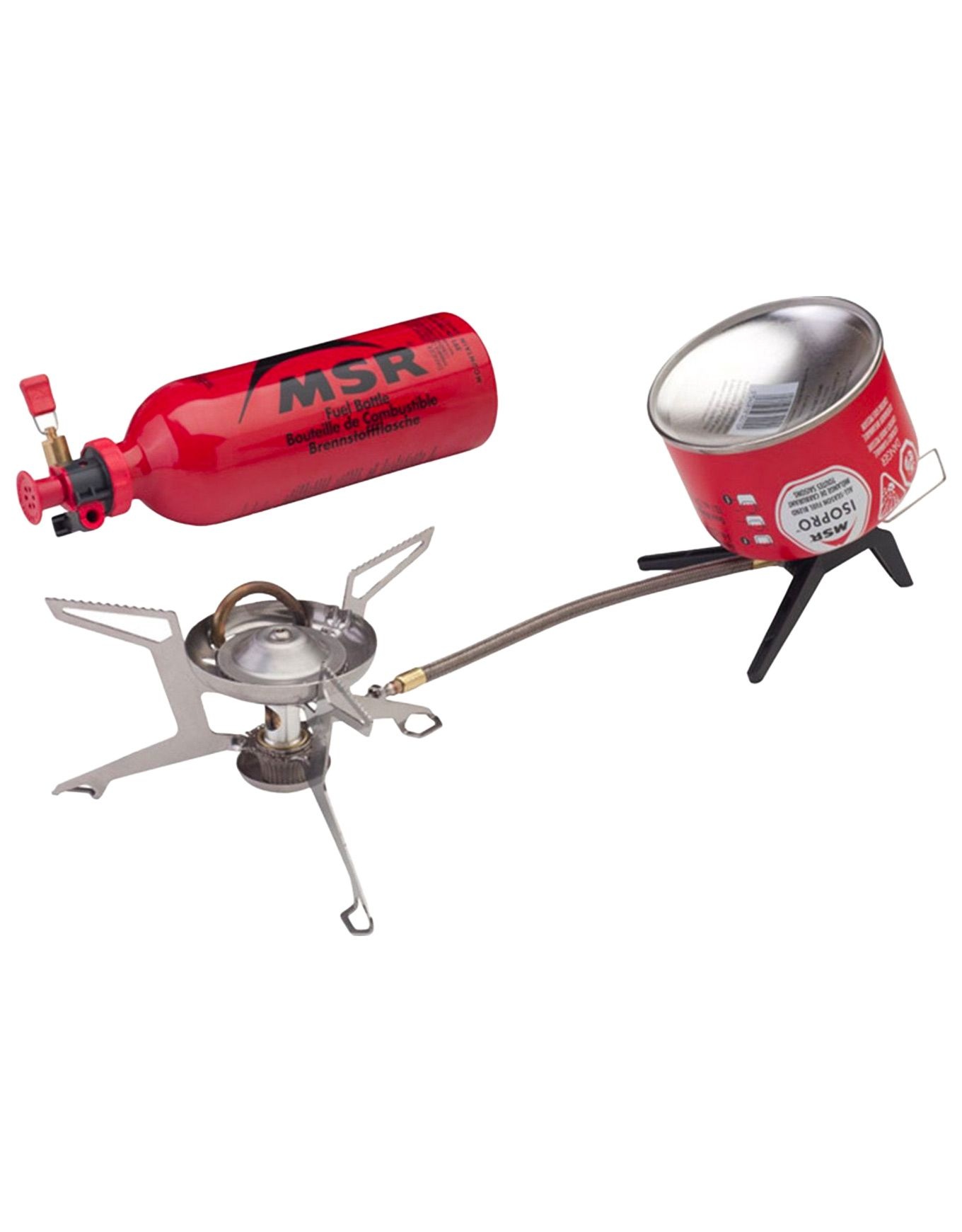 Réchaud multi-combustible MSR WhisperLite™ Universal fonctionnant au gaz, essence C, kérosène ou essence sans plomb, doté de la technologie AirControl pour une combustion optimisée. Léger et stable avec ses pieds en acier inoxydable, il s’adapte aux conditions hivernales par inversion de cartouche.