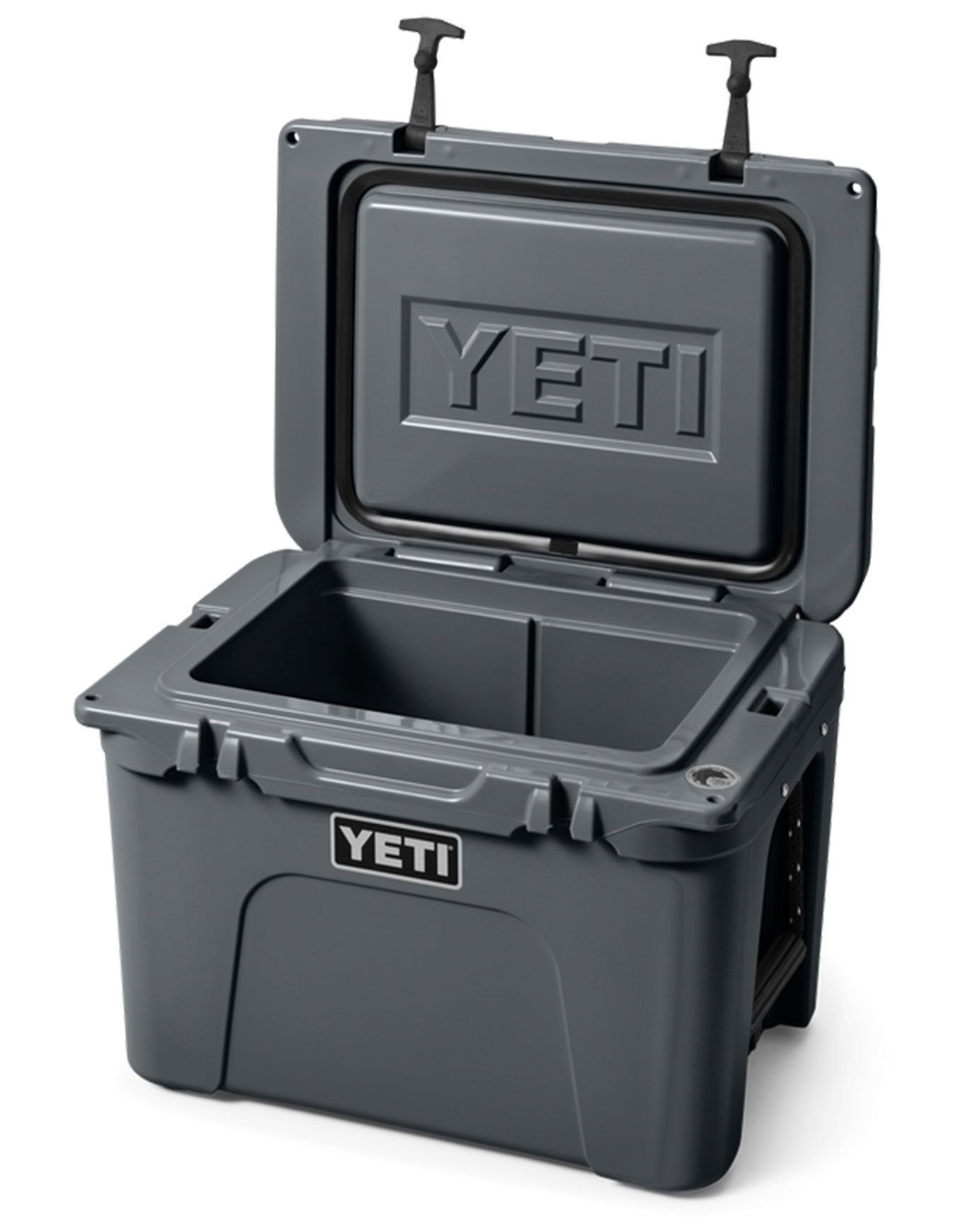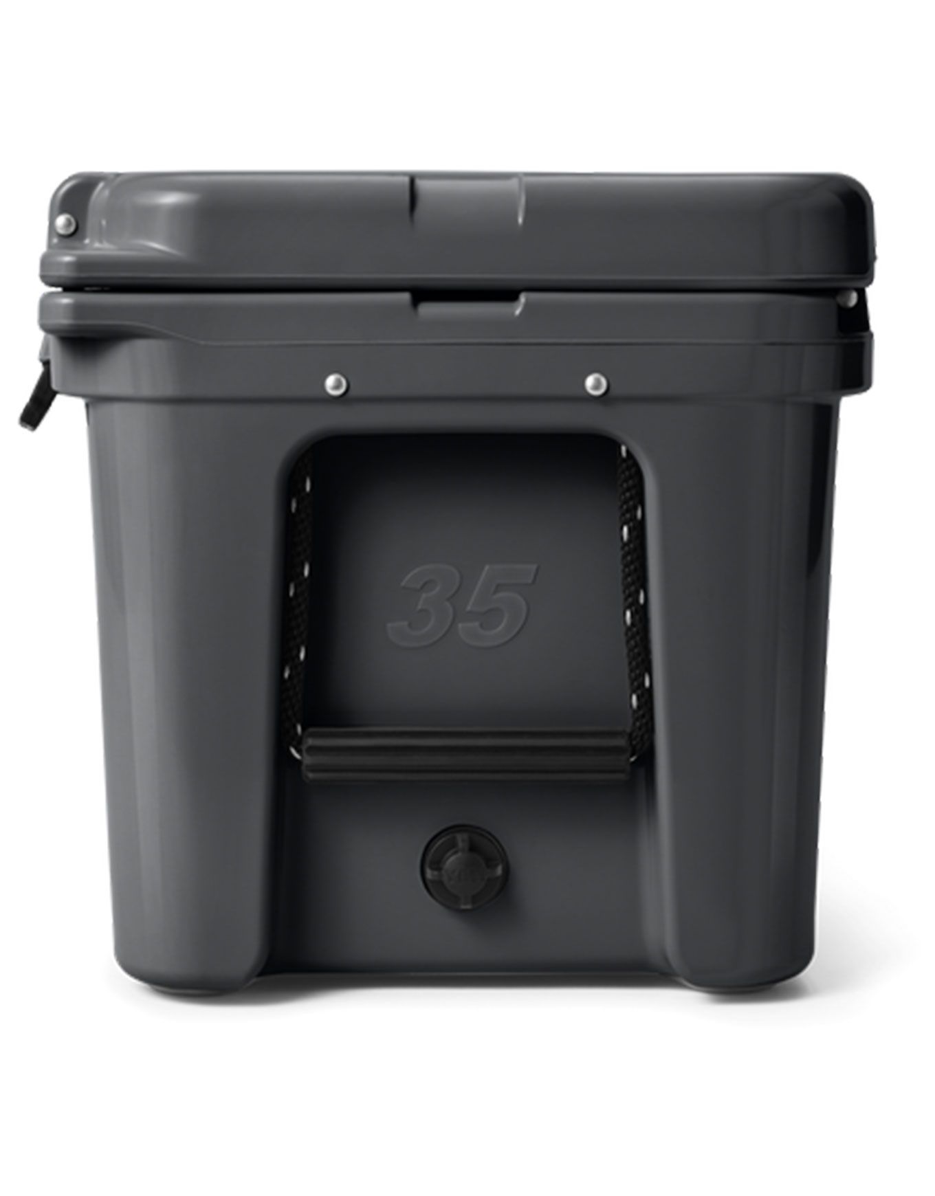 Yeti Tundra 35 Charcoal, glacière haut de gamme en rotomoulage, garde contenu au frais par isolation PermaFrost™ et parois Fatwall™ de 5 cm, joint Coldlock™ et vidange Vortex™ intégrés.