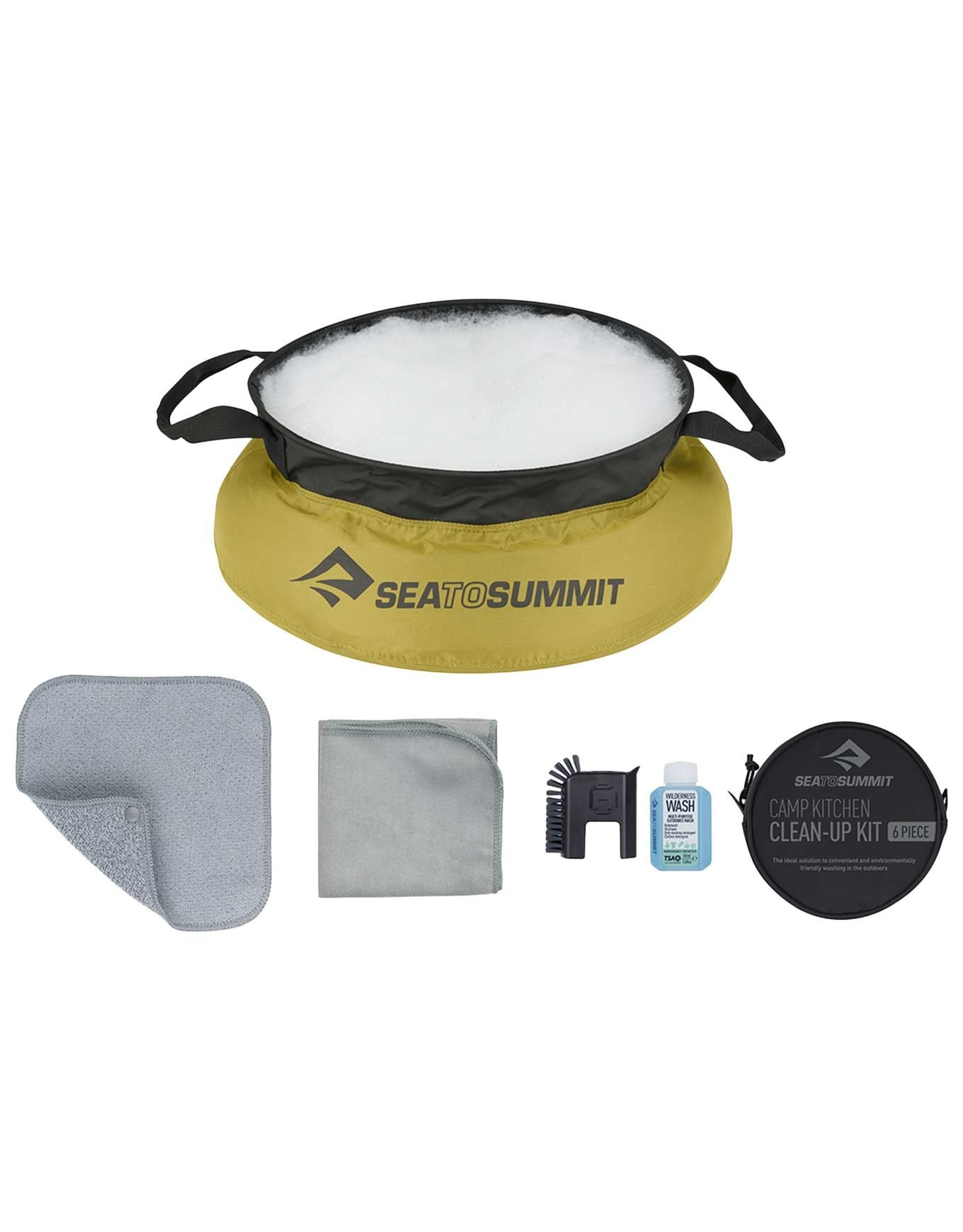 Pour la vaisselle et les nettoyages rapides lors de vos bivouacs et campings, Sea To Summit propose ce Kit de Nettoyage comprenant un évier portatif de 10 L, une brosse-savon multi-usages de 50 mL ainsi que deux serviettes destinées au séchage de la vaisselle ou des objets lavés. Sa compacité exceptionnelle en fait l’équipement indispensable pour vos expéditions en trek, vos séjours sous tente et vos road trips en van !