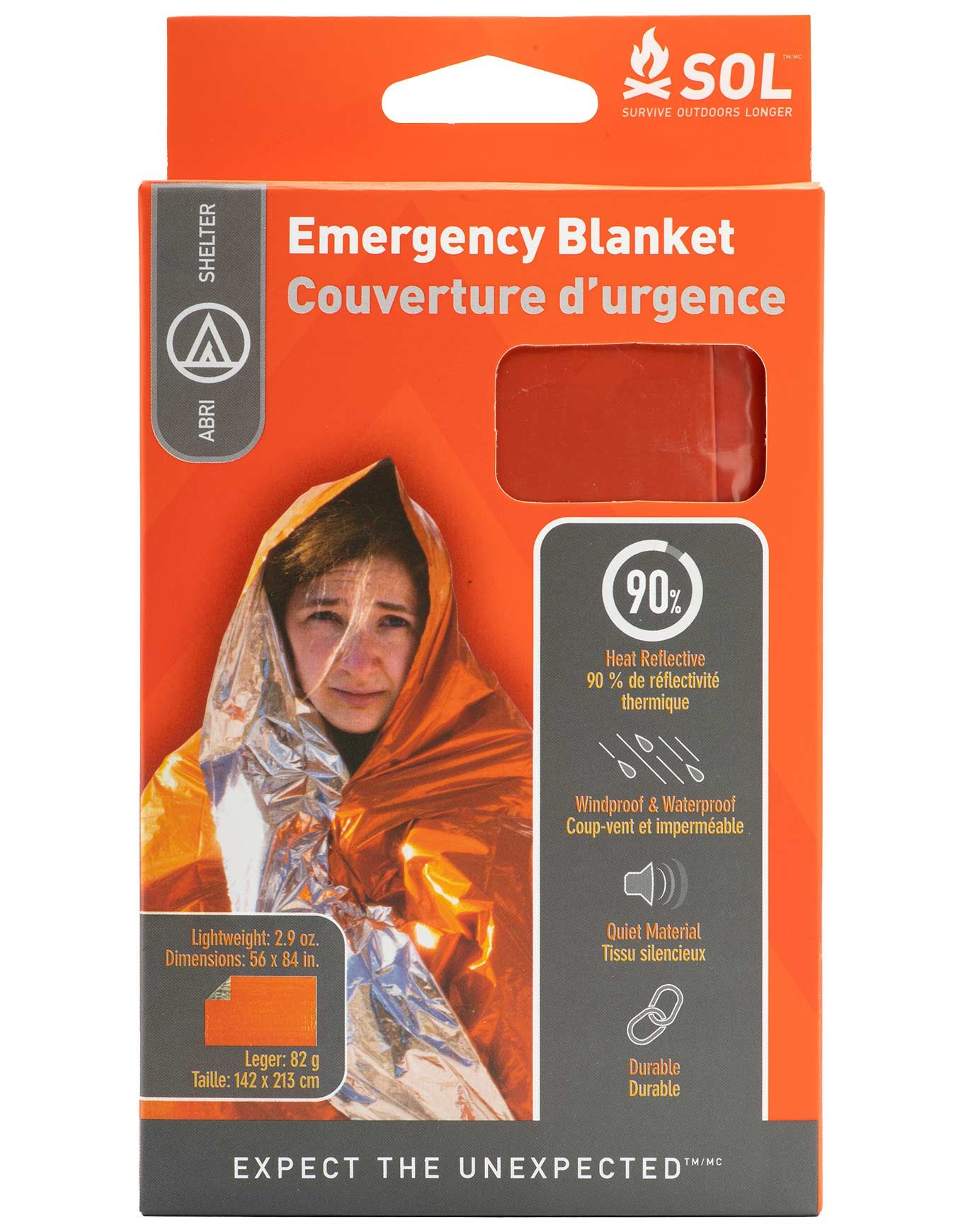 La couverture de survie SOL Emergency Blanket est conçue pour une personne et se transforme facilement en bâche, abri ou protection. Son film de polyéthylène aluminisé retient 90 % de la chaleur corporelle tout en résistant aux déchirures, aux intempéries et à l’usure. Elle se déploie sans effort et ne s’aggrave pas si elle est fissurée ou trouée. Sa teinte orange ultra-visible vous rend repérable à distance. Utilisable aussi comme bâche au sol ou pour couvrir une pile de bois. Découvrir les catégories associées Survie Matériel trekking et camping