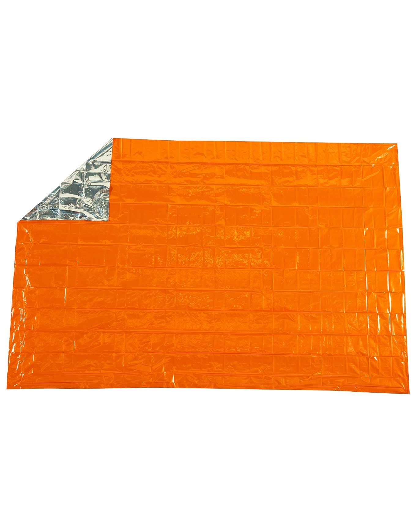 Cette couverture technique présente deux faces distinctes : une surface orange assurant une haute visibilité et une face aluminium permettant de conserver la chaleur. Elle retient 90 % de la chaleur corporelle tout en résistant aux déchirures et aux conditions venteuses. Conçue pour une personne, elle intègre des instructions de survie imprimées directement sur le tissu.
