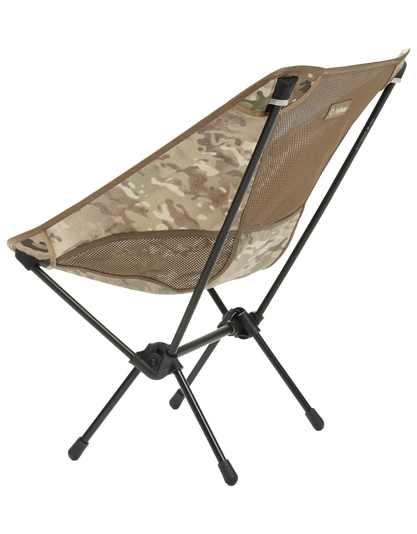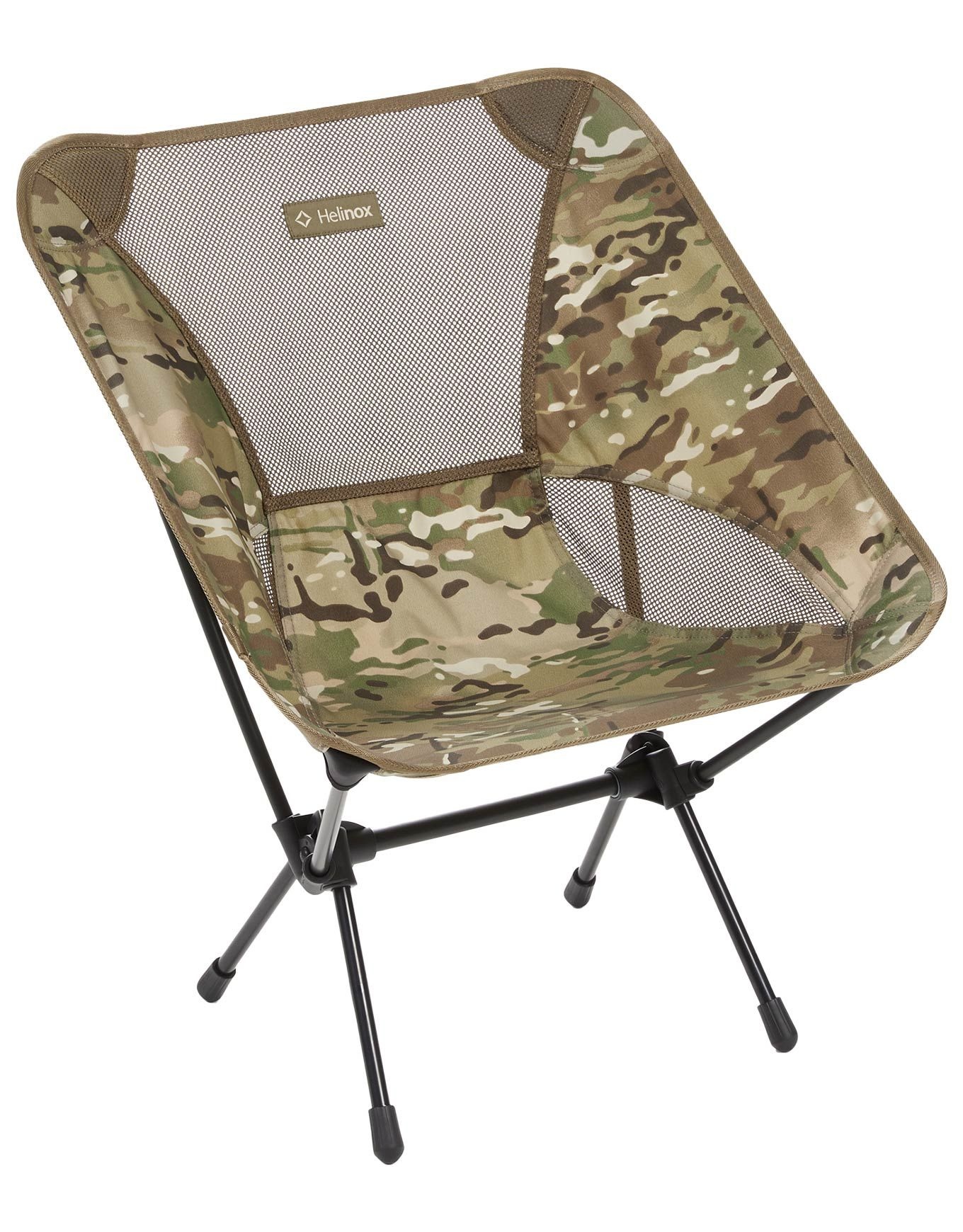 Chaise de camping Helinox Chair One Multicam, 965 g, aluminium/nylon, 145 kg max, tissu polyester 600D recyclé Bluesign, coins renforcés, mailles aérées.