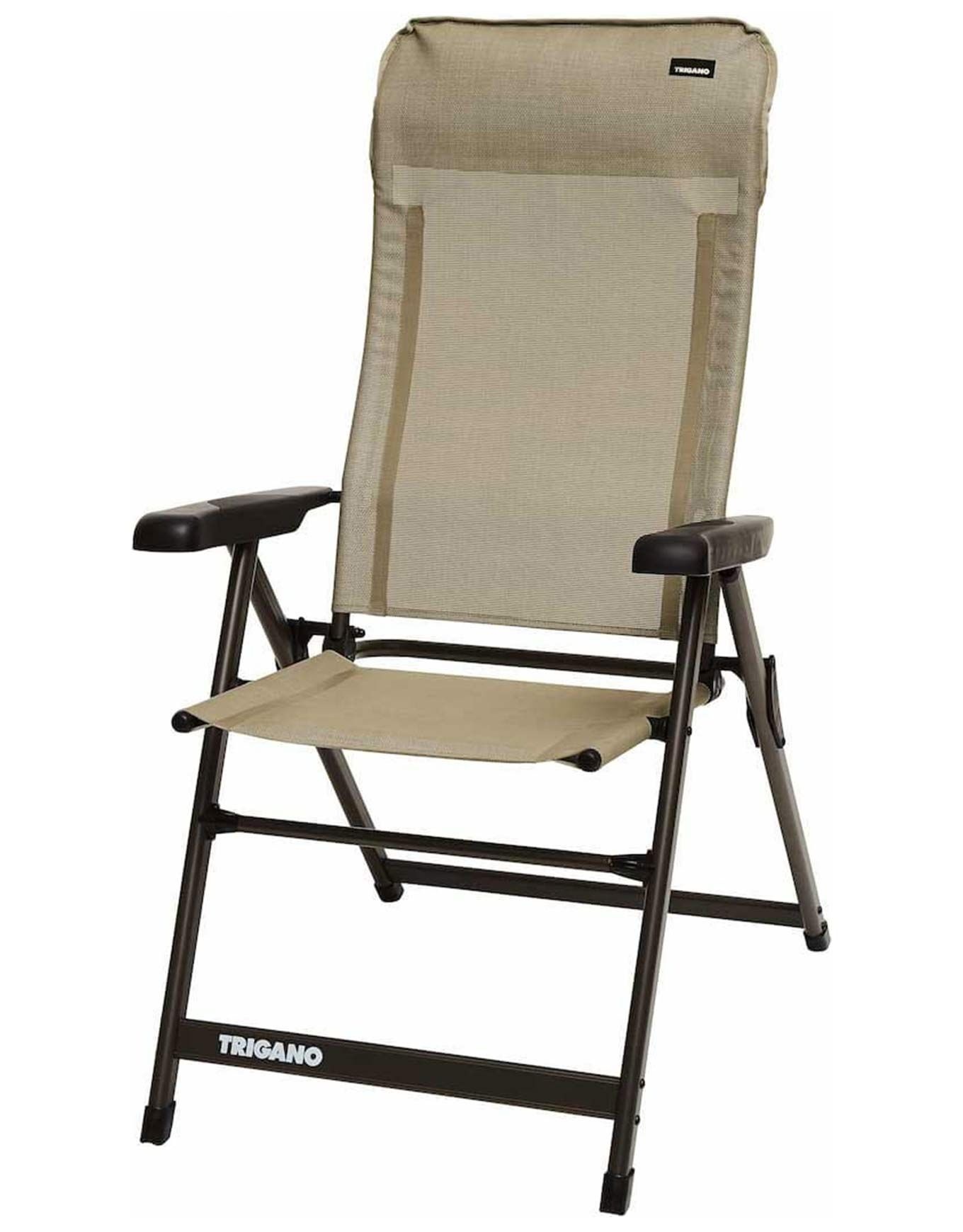 Fauteuil pliable Trigano Alu Dossier Haut Slim Moka, inclinable 7 positions, dossier textilène léger et solide, charge 120 kg, idéal van, jardin ou terrasse.