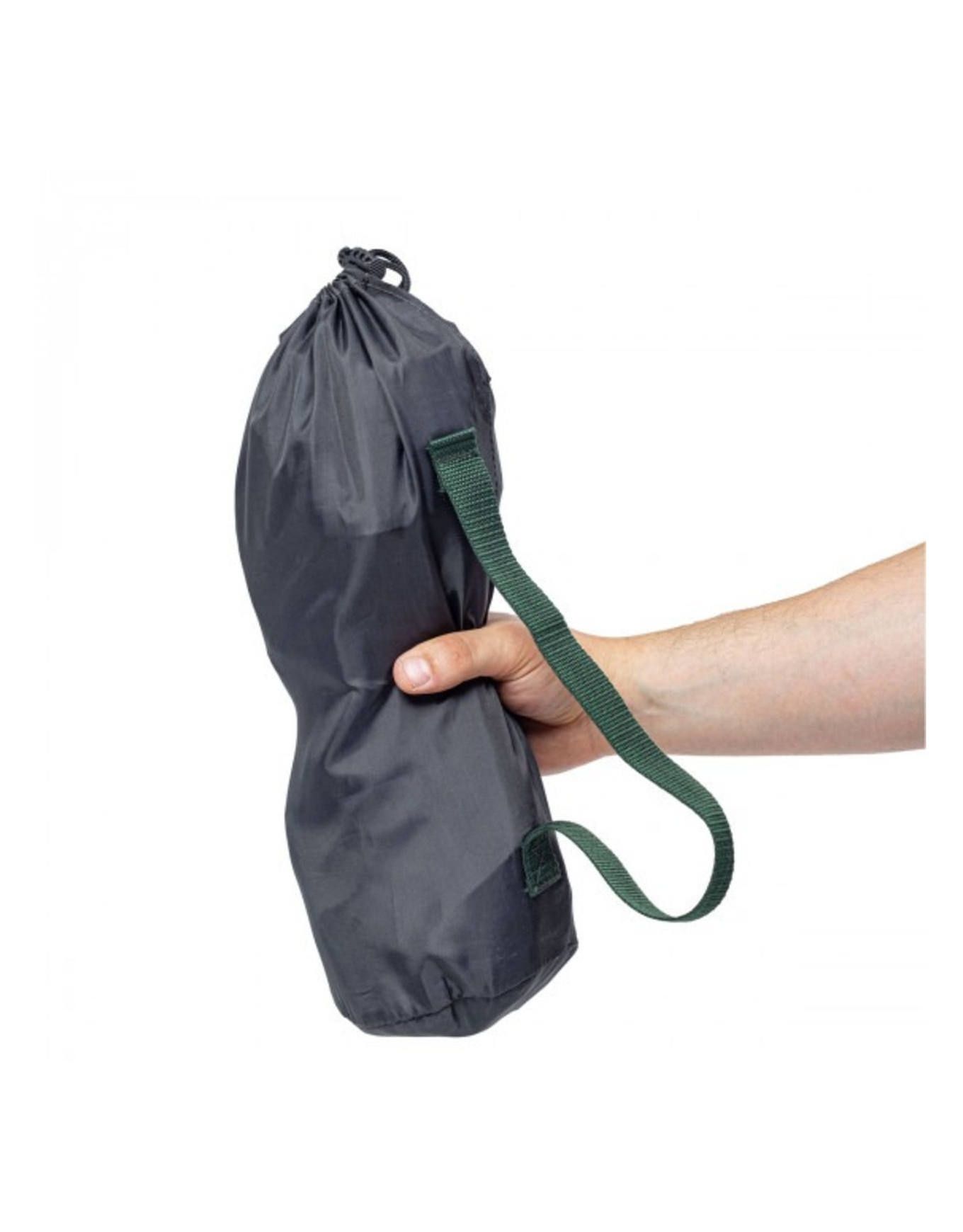 Une fois replié, le fauteuil glisse dans son sac de rangement inclus, qui prend très peu d’espace dans le coffre du van ou au fond du sac de randonnée.