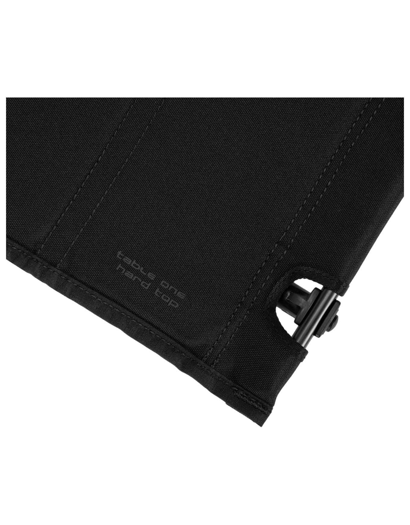 Table de camping Helinox One Hard Top Blackout : plateau rigide polycarbonate, 960 g, 50 kg charge, pliage ultra-compact, armature aluminium DAC, plateau polyester 600D bluesign®.