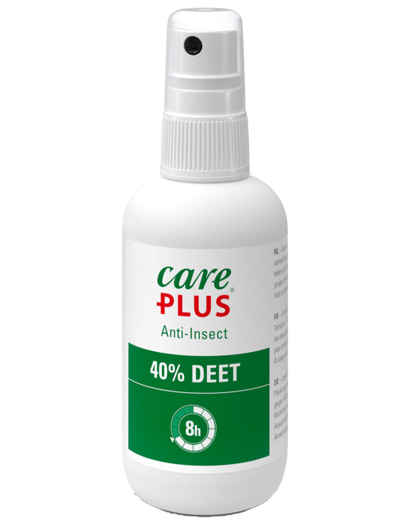 Le spray anti-insectes Care Plus® à base de DEET 40 %, format 100 ml, offre une défense maximale pour la peau, aussi bien en zone tropicale qu’en Europe. Le principe actif DEET (N,N-diéthyl-méta-toluamide) repousse efficacement moustiques, tiques, poux et punaises. Une application sur les zones exposées limite les piqûres et, par là même, le risque de maladies transmises. Une flaconnette permet environ 2 à 3 semaines d’utilisation journalière. Découvrir les catégories associées Anti-insectes Protections/soins