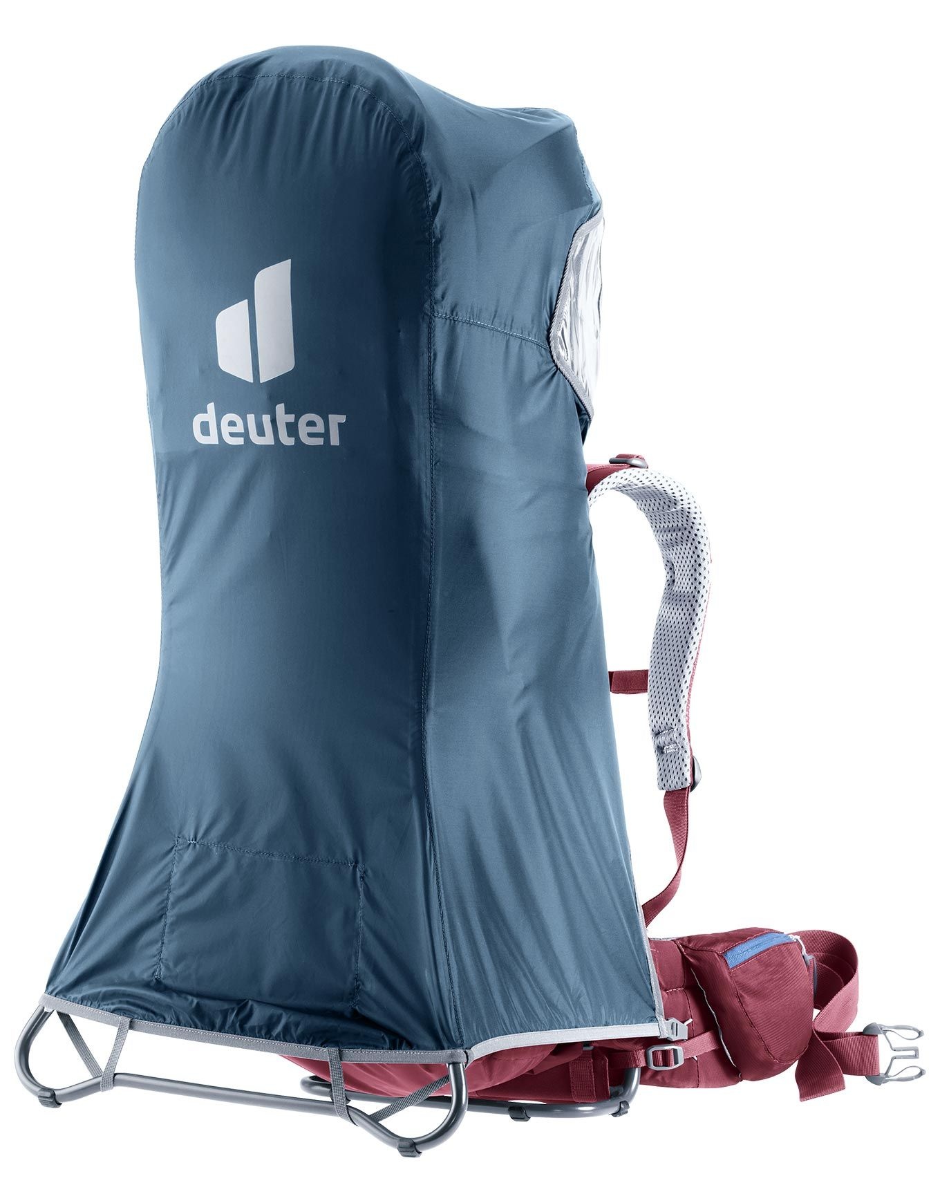 Deuter KC Raincover Deluxe Ara protège enfant et porte-bébé contre pluie et vent, s’adaptant à tous modèles avec auvent pour des randonnées confortables par mauvais temps.