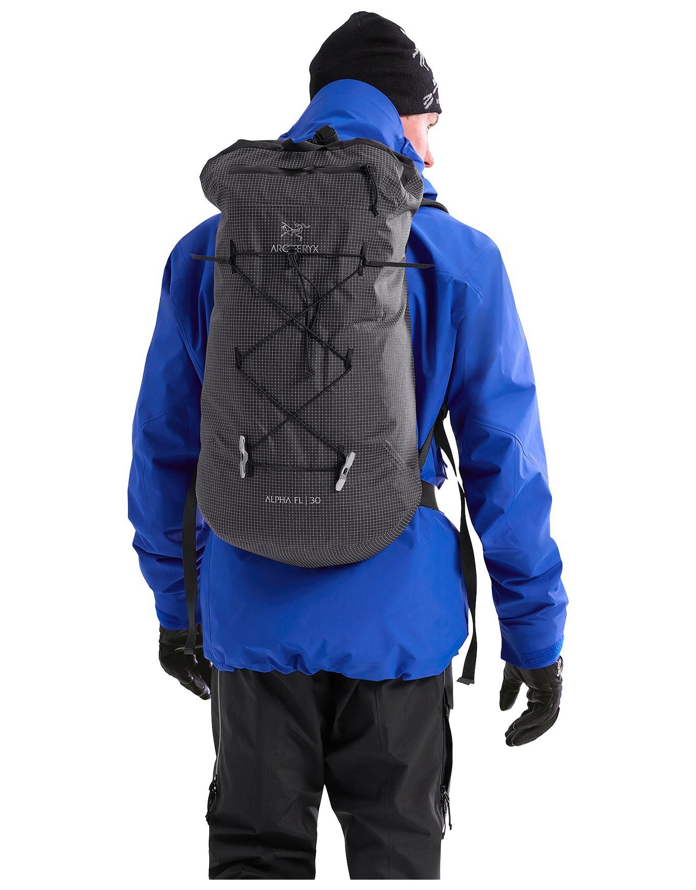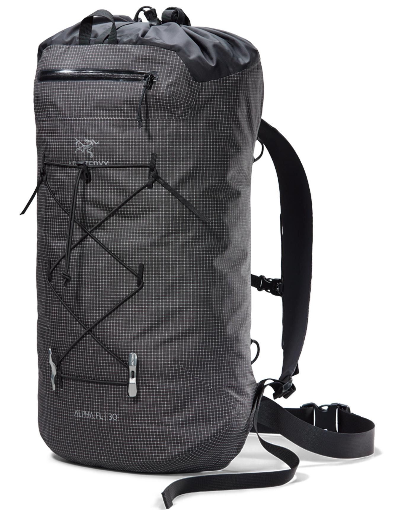 Sac à dos Arc’teryx Alpha FL 30 en nylon Cordura® imperméable, coutures scellées AC², fermeture RollTop™, 30 L pour escalade et alpinisme.