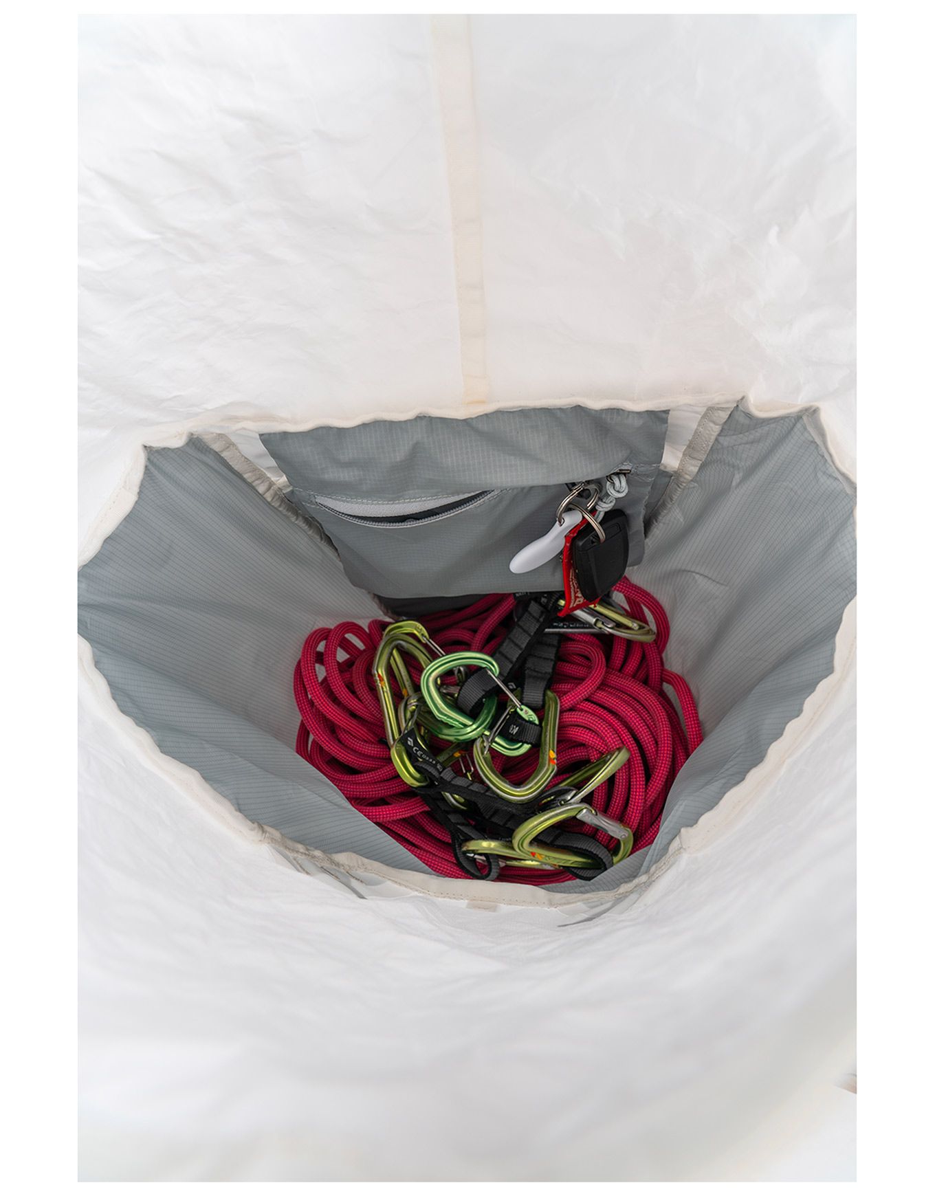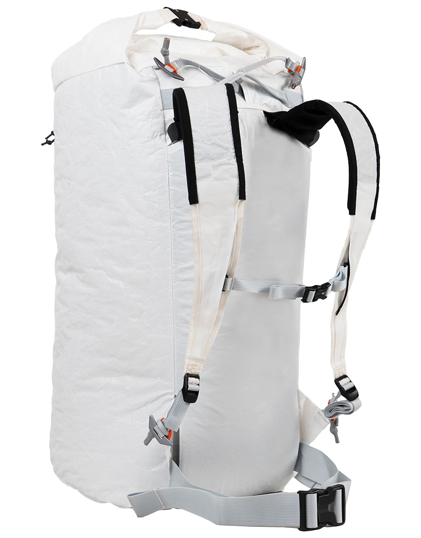 Pour la première fois sur ce modèle, l’Aluula Durlyte™ — tissu à la fois imperméable et résistant aux déchirures — préserve l’équipement des agressions extérieures. L’intégralité du système de portage étant escamotable, le sac se prête parfaitement au hissage lors d’ascensions en grandes voies. Le confort de transport est garanti par des bretelles rembourrées, elles aussi escamotables.