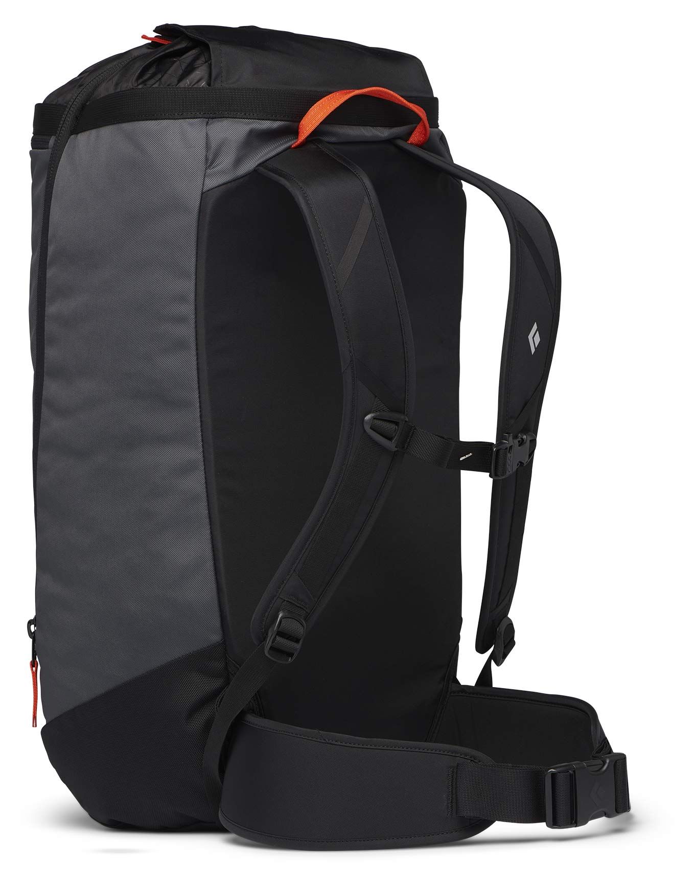 Sac à dos d’alpinisme et d’escalade Black Diamond Crag 40 Carbon, volume 40 L avec ouverture par le haut, fermeture éclair latérale intégrale pour accès baudrier, poche intérieure sécurisée et rabat-sangle à corde intégré.