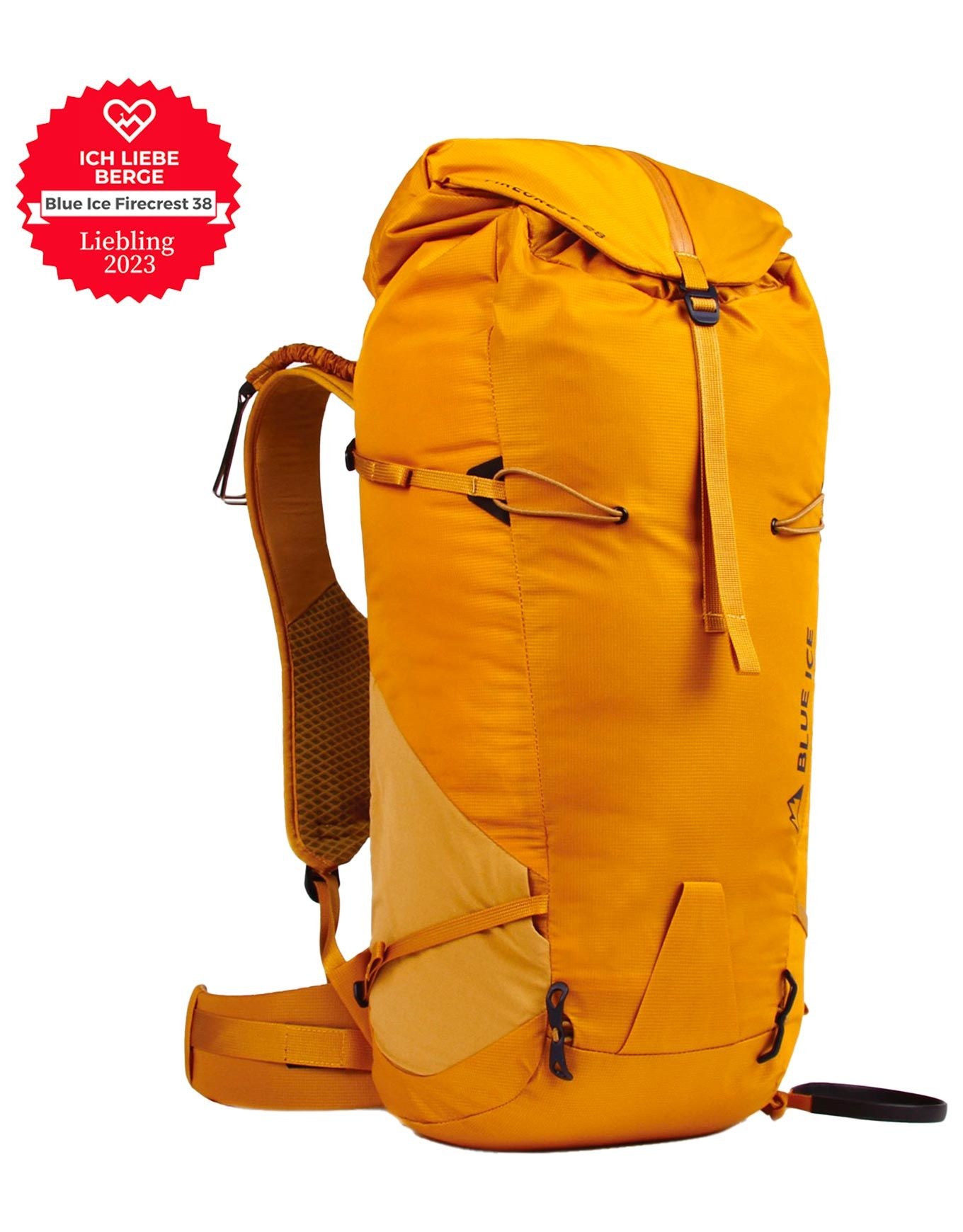Sac à dos d’alpinisme et ski de randonnée Blue Ice Firecrest 38 Arrow Wood, 38 L, avec sangles latérales ski, doubles porte-piolets, accès latéral, structure dorsale métallique amovible et ceinture matelassée pour portage performant.