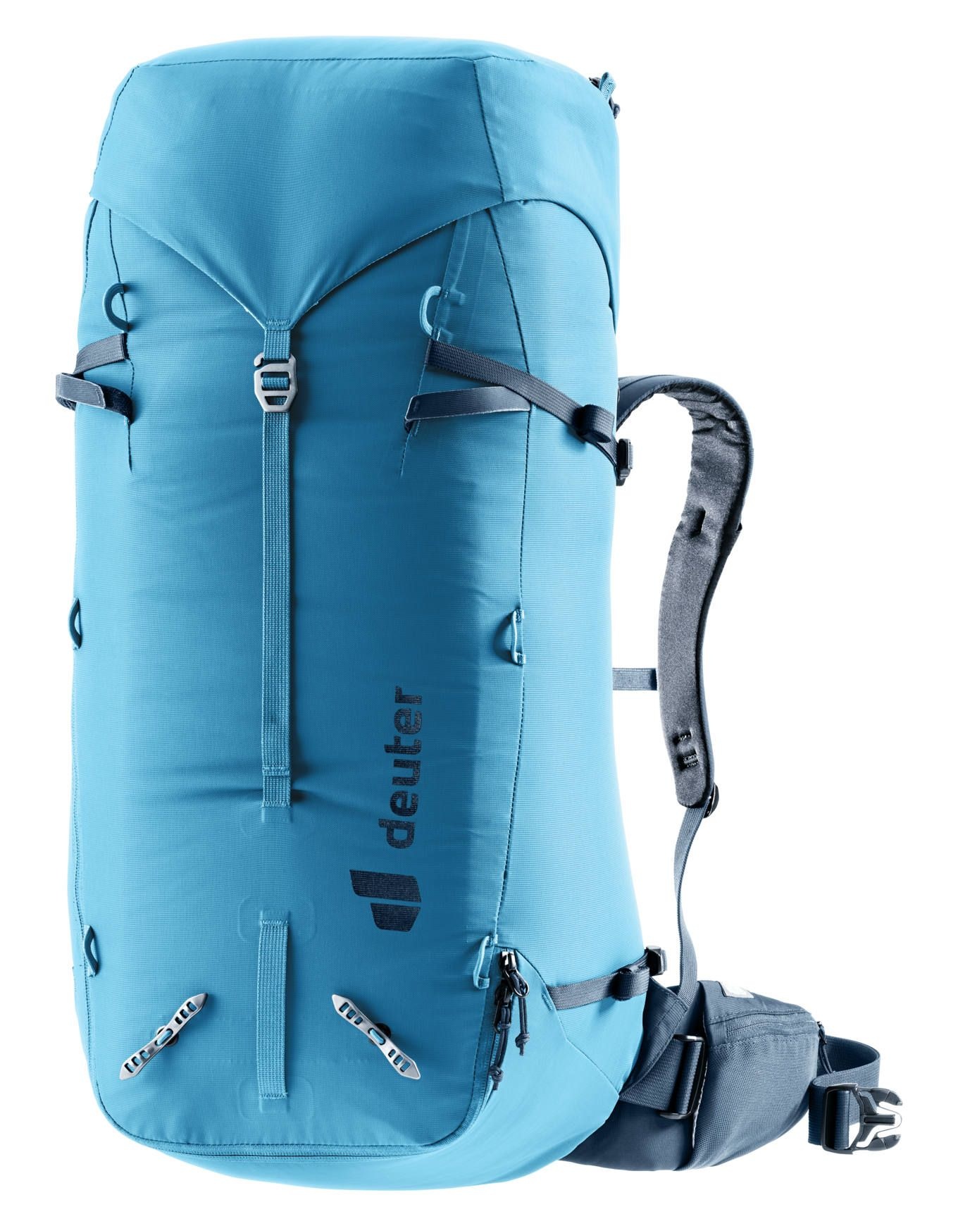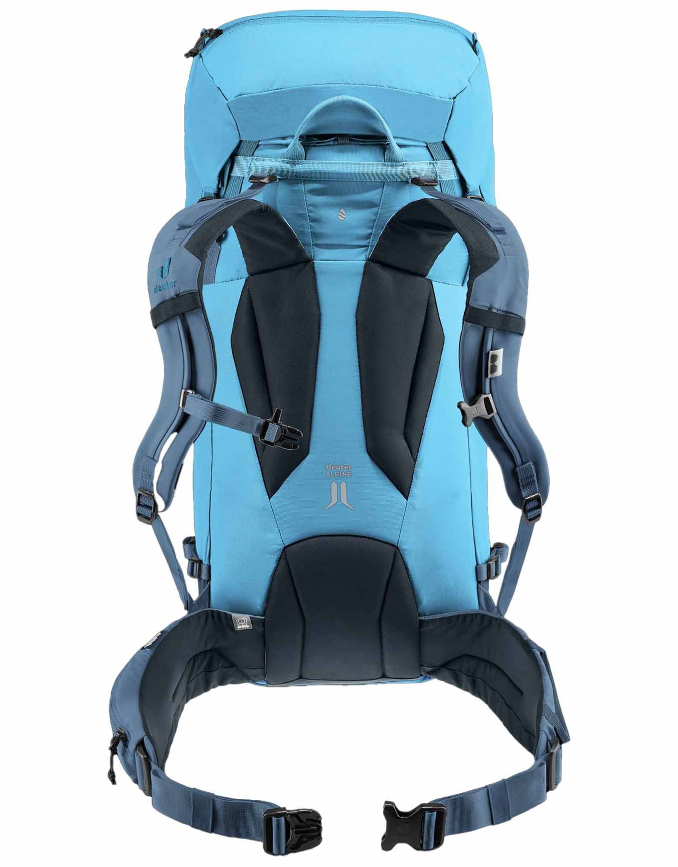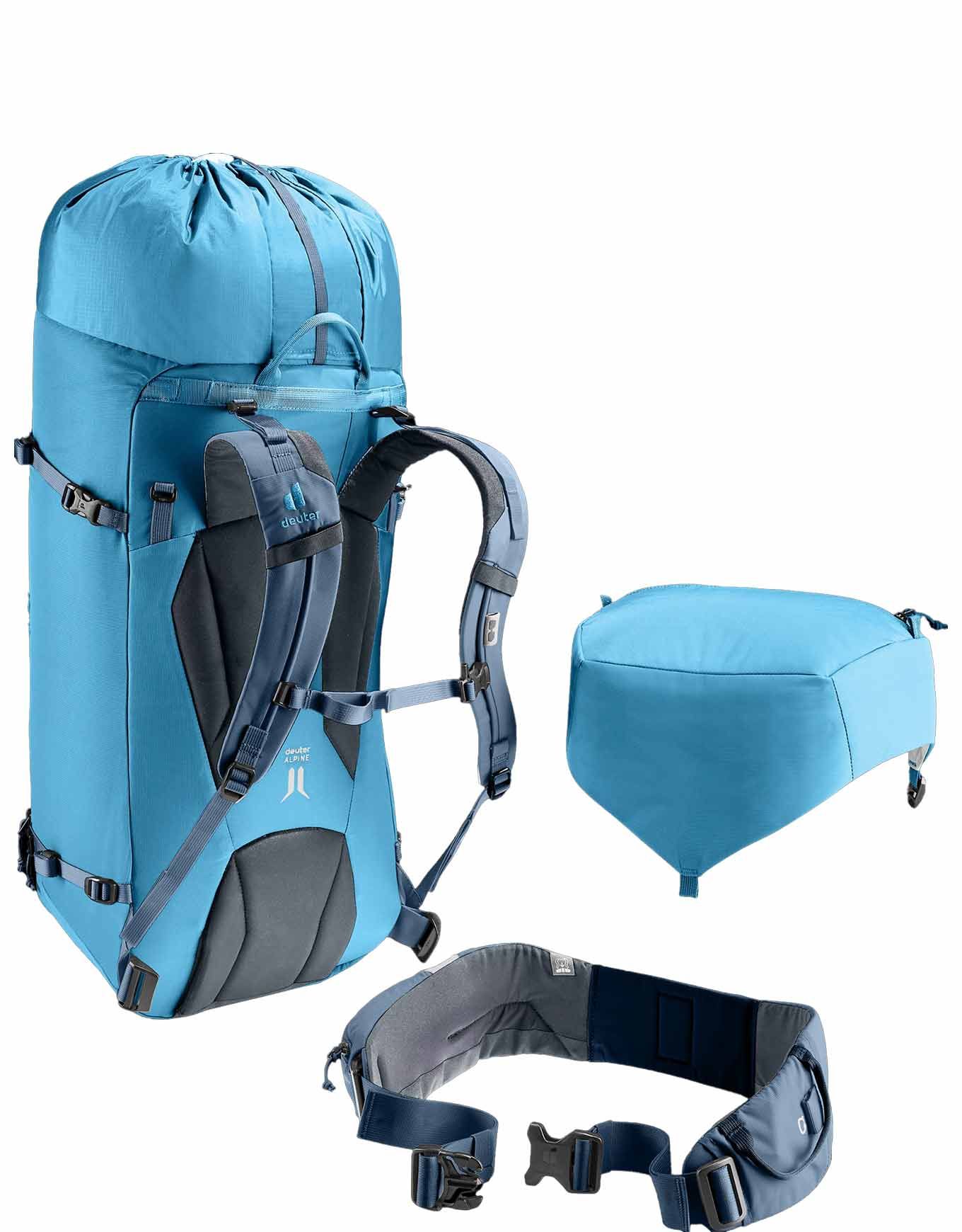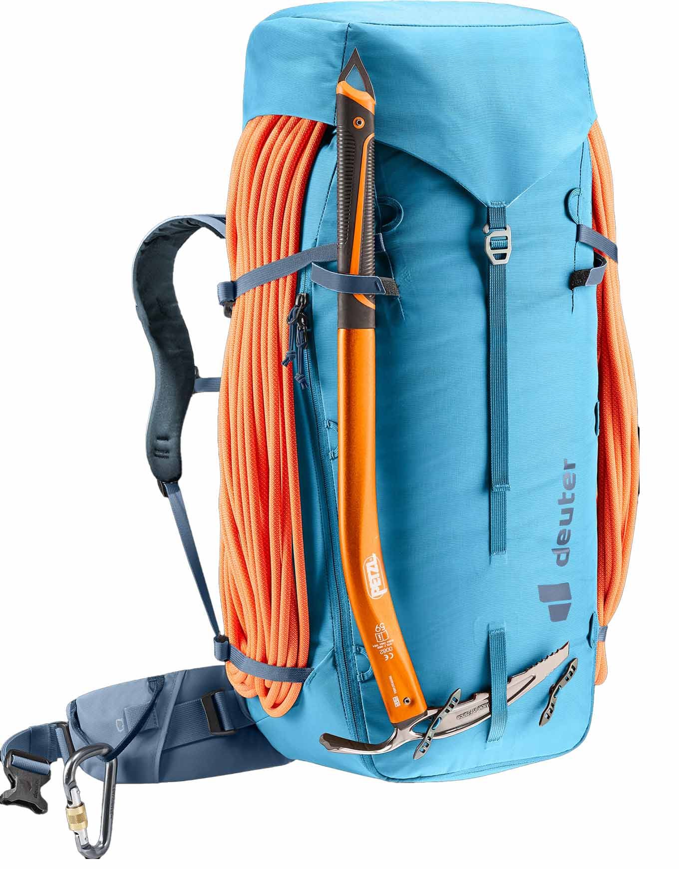 Sac à dos d’alpinisme Deuter Guide 44+8 Wave Ink, 44 L extensibles à 52 L, s’adapte aux expéditions d’une journée ou plus. Système dorsal Alpine, cadre Delrin® amovible, fixations piolet/corde, compatible poche à eau 3 L.