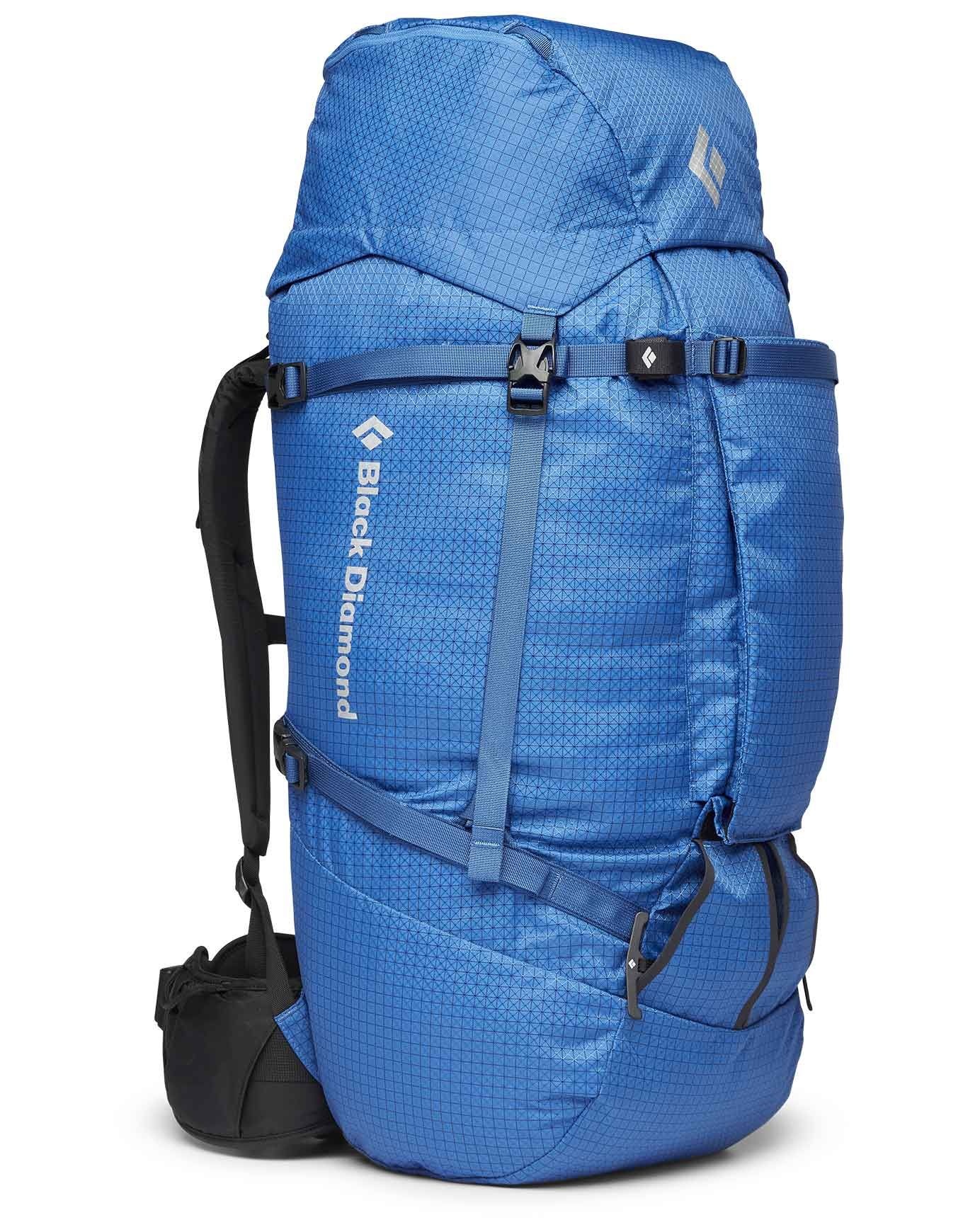 Sac à dos d’alpinisme Black Diamond Mission 75 Cobalt, 75 L, en nylon X-Rip 420D UTS™ résistant à l’abrasion et aux intempéries, avec bretelles harnais, panneau dorsal anti-humidité amovible, porte-piolets PickPockets™, porte-crampons et porte-corde escamotable pour approche et ascension.