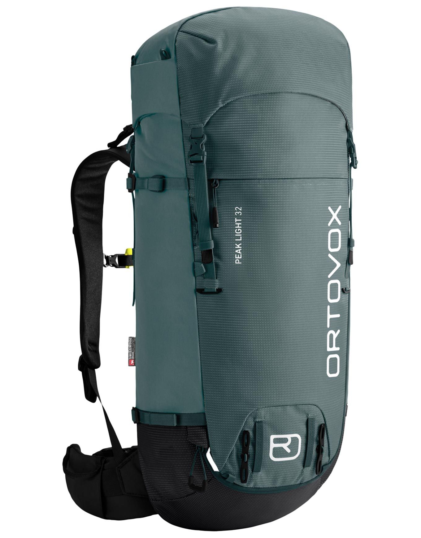 Sac à dos d’alpinisme Ortovox Peak Light 32 Arctic Grey, 880 g, nylon 420D ultra-résistant, dos en laine Suisse compressée autocontrôlant température et humidité, bretelles et ceinture rembourrées amovibles, accès frontal rapide, compatibles poche à eau.