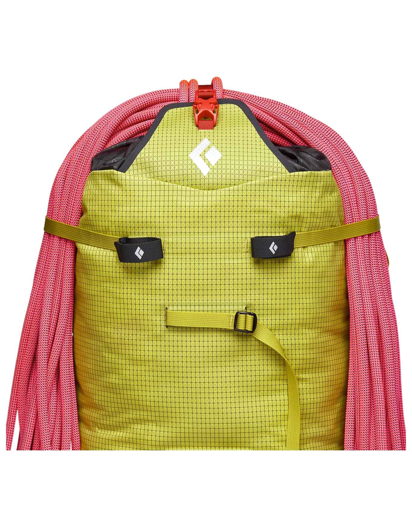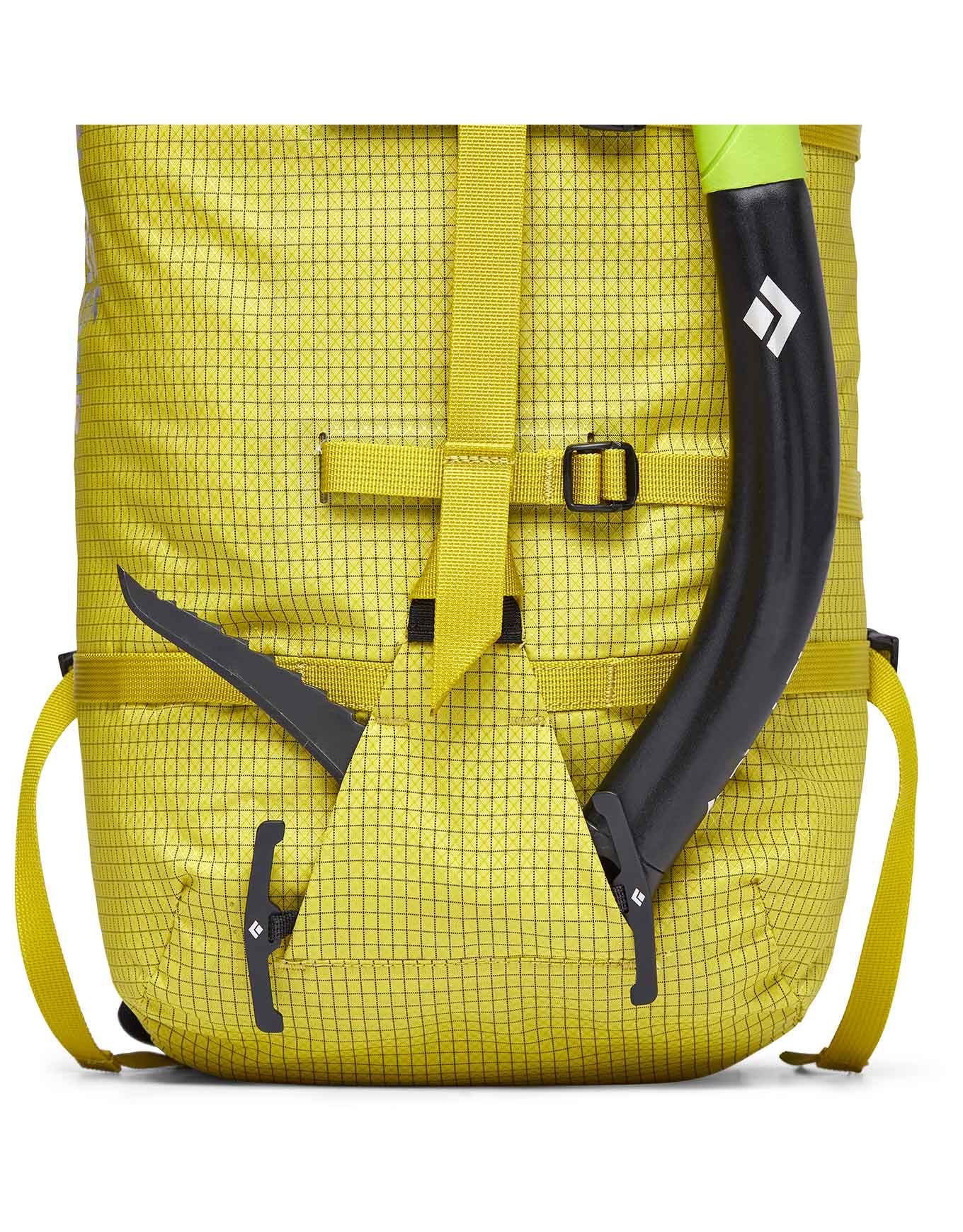 Les porte-piolets PickPockets™Le transport sécurisé de votre équipement à l’extérieur du sac est rendu possible par des porte-crampons amovibles, un porte-corde escamotable et des allégés.