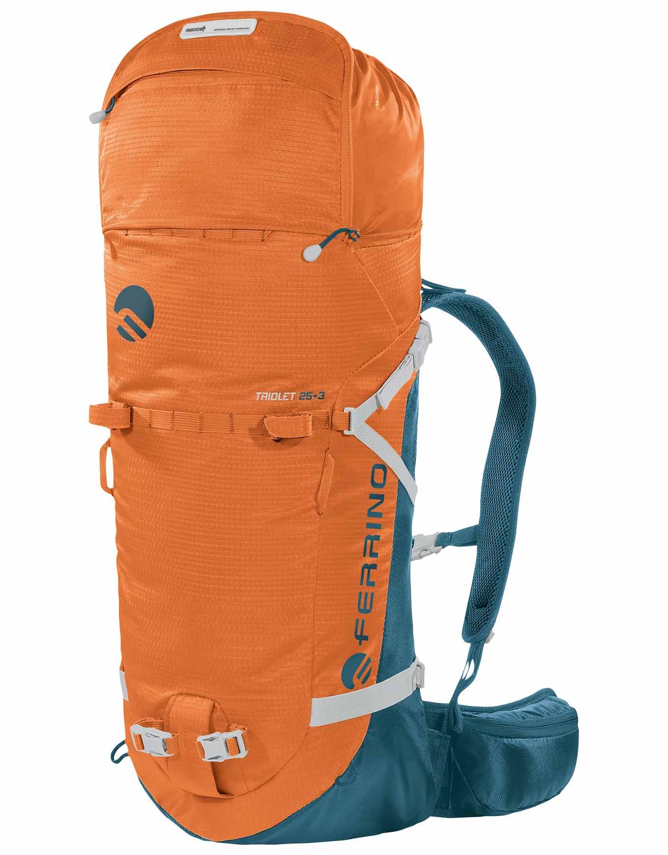 Le sac à dos d’alpinisme Ferrino Triolet 25+3 Orange, en résistant Diamond Dobby®, combine confort respirant Hollow Back System, stabilité de charge et sécurité Recco® pour vos ascensions par tous temps.