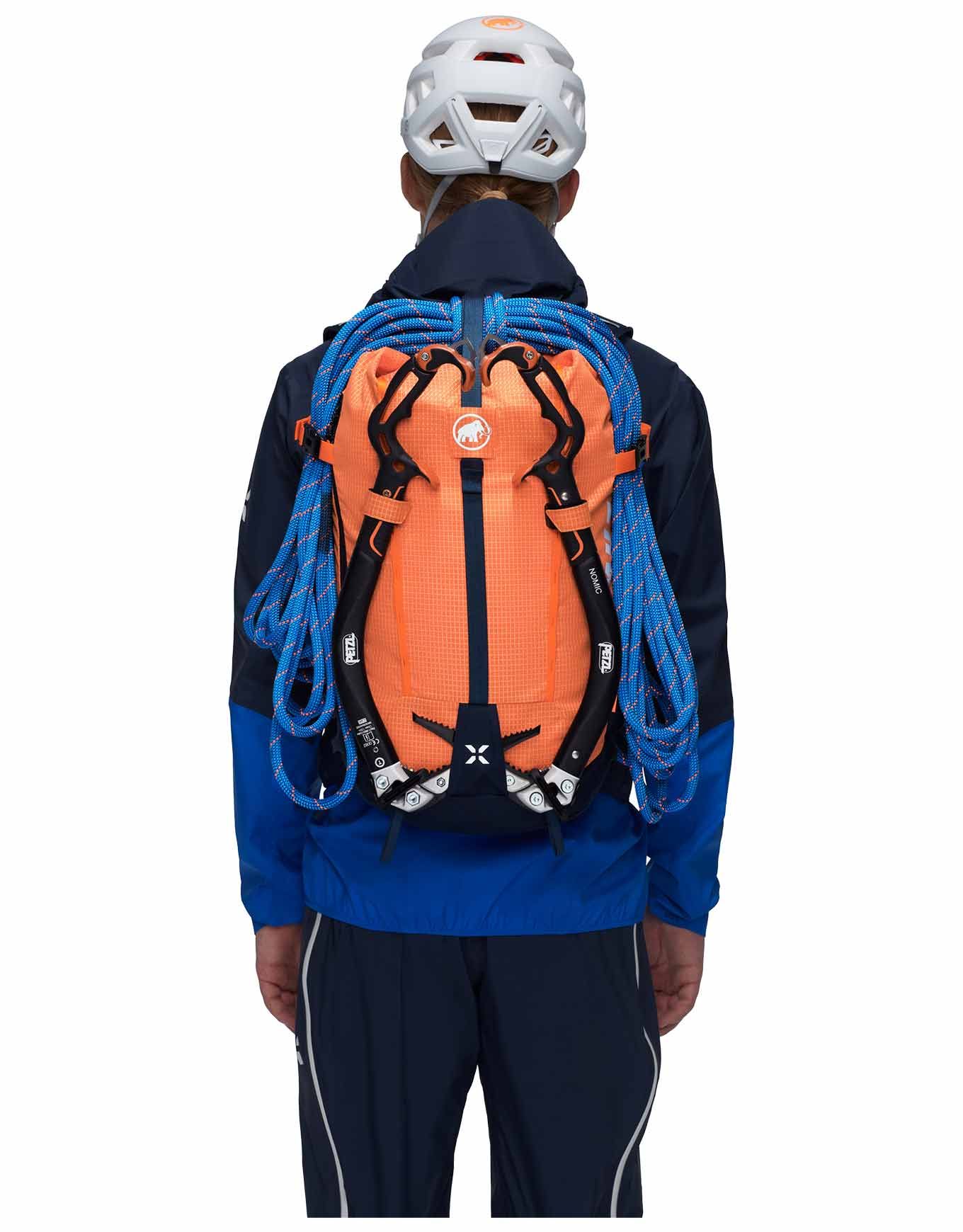 Sac à dos Mammut Trion 28 Arumita/Marine, 28 L, conçu pour l’alpinisme, le ski de rando et l’escalade. Léger, résistant à l’abrasion et traité DWR sans PVC, il offre portage ergonomique, accès roll-top ou latéral, compartiment sécurité avalanche, porte-piolets, porte-skis et compatibilité poche à eau.