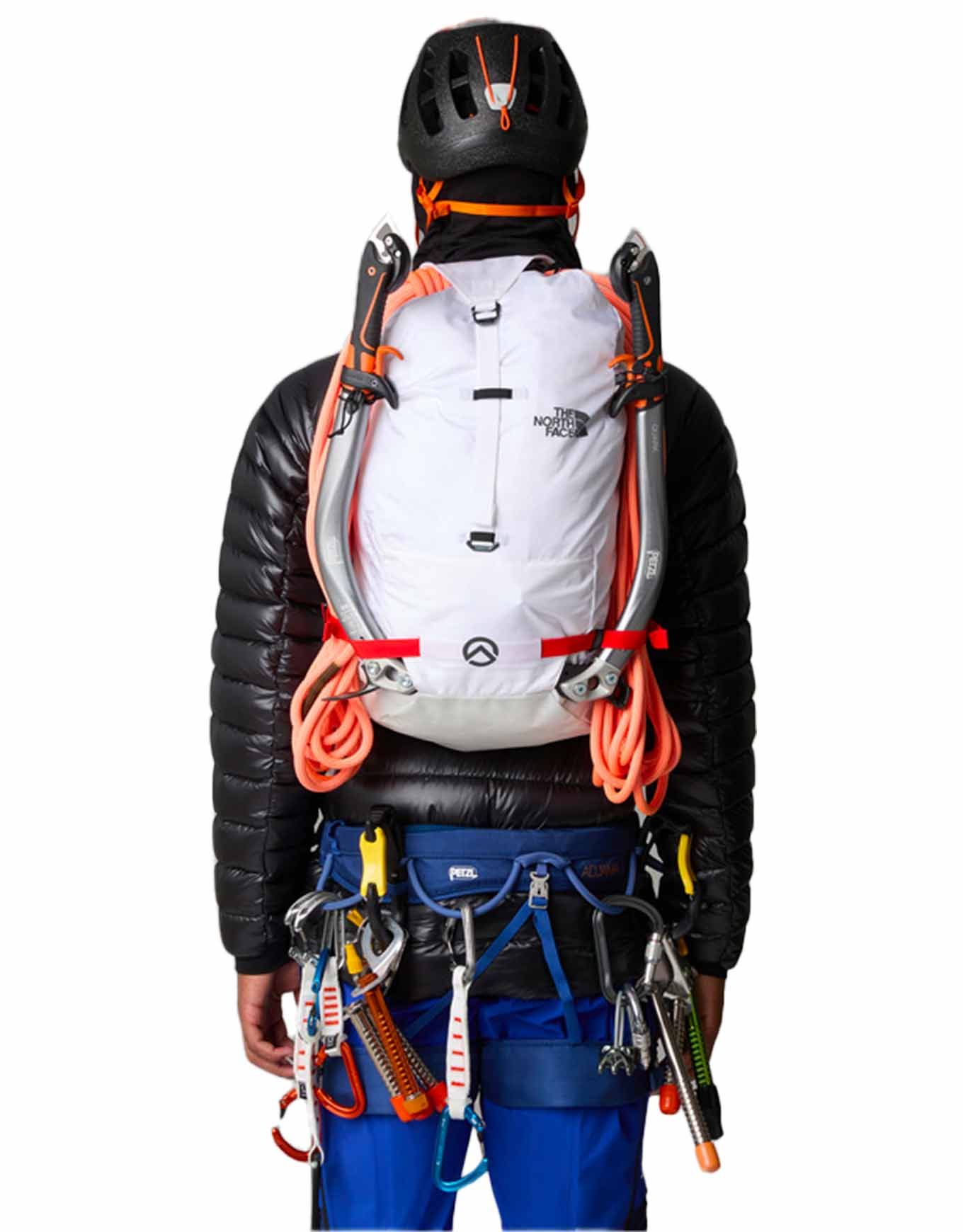 Des porte-outils sont intégrés aux extrémités protégées de la partie extérieure, permettant un accès aisé au matériel technique. Grâce à sa compressibilité, le Verto 27 peut être rangé dans un sac d’approche jusqu’au camp de base. La présence de bandes réfléchissantes optimise la visibilité durant les départs nocturnes en direction des sommets.