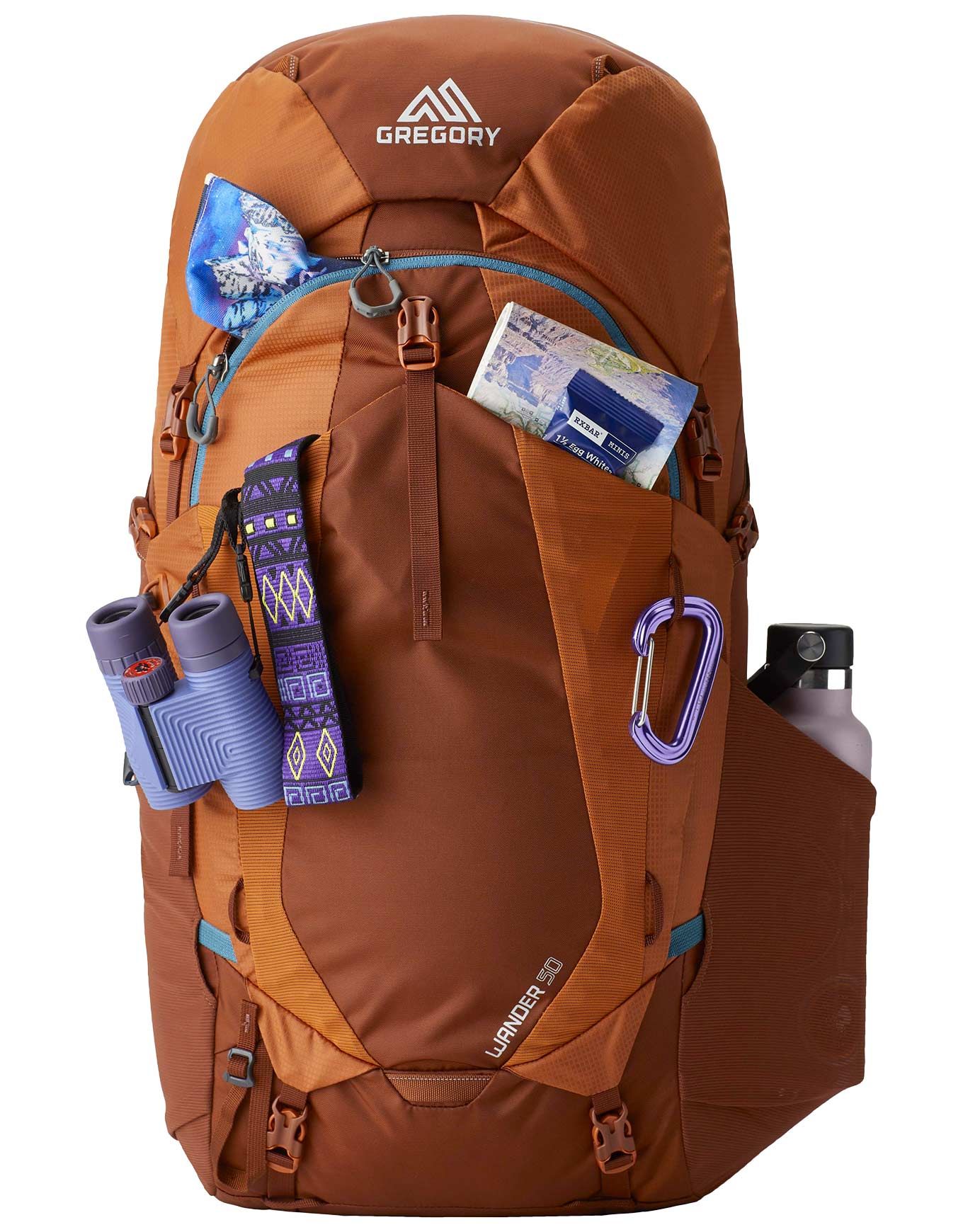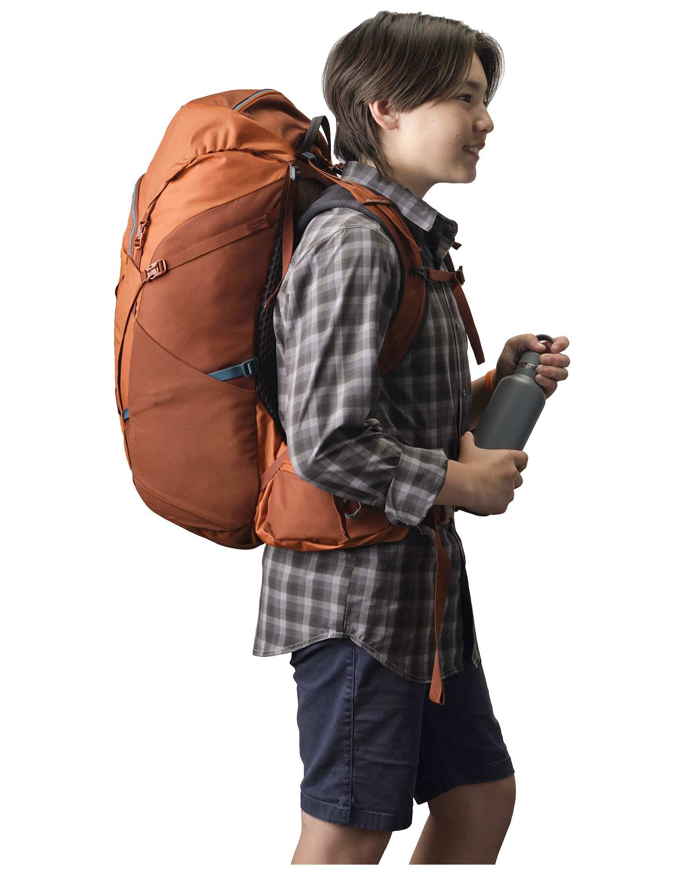 Sac à dos de randonnée Gregory Wander 50 Redrock, 50 L, conçu pour les jeunes trekkeurs : ajustable VersaFit, dos mousse 3D respirant, ceinture ventrale et attaches bâtons intégrées.