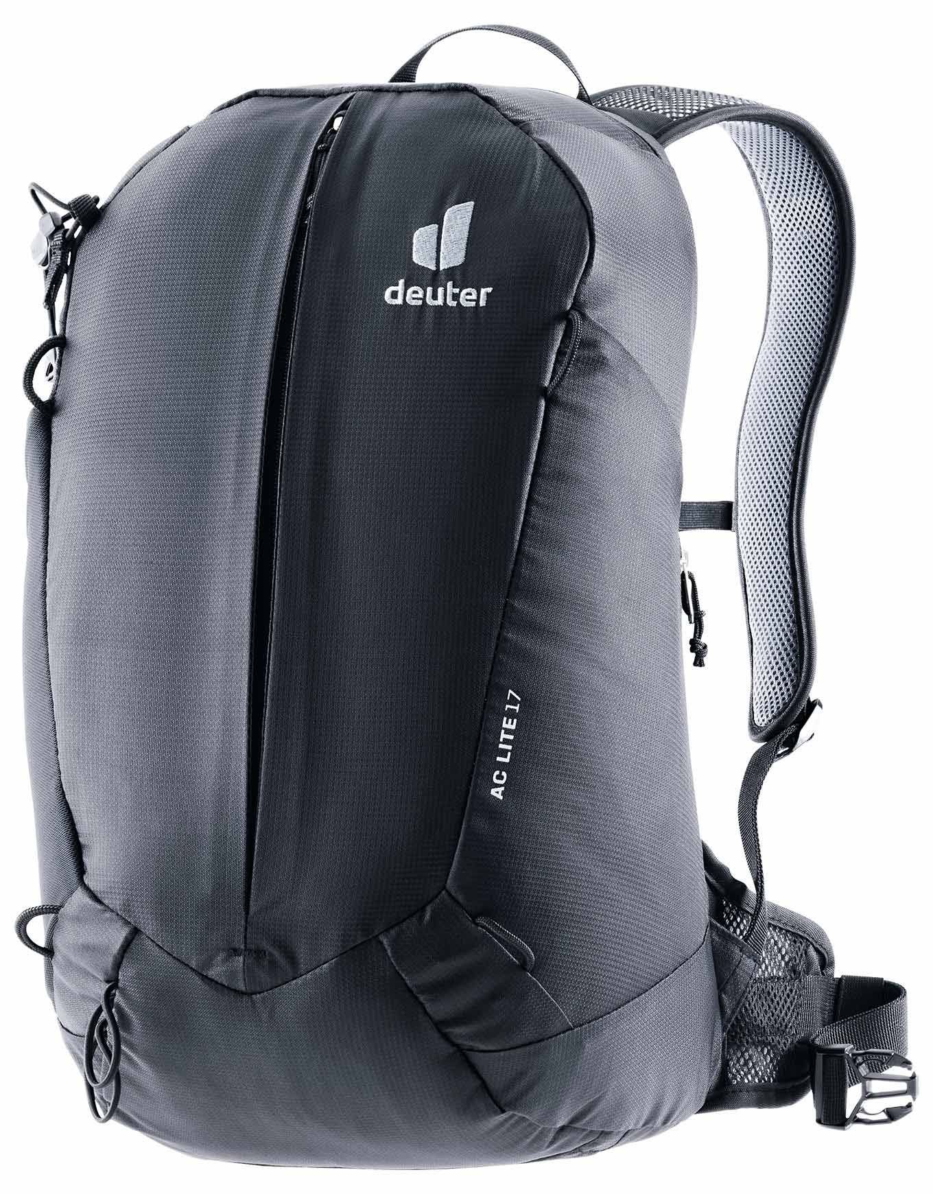 Sac à dos de randonnée Deuter AC Lite 17 Black, homme, dos filet Aircomfort ventilé réduisant la transpiration de 25 %, bretelles ergonomiques, housse pluie, 17 L.
