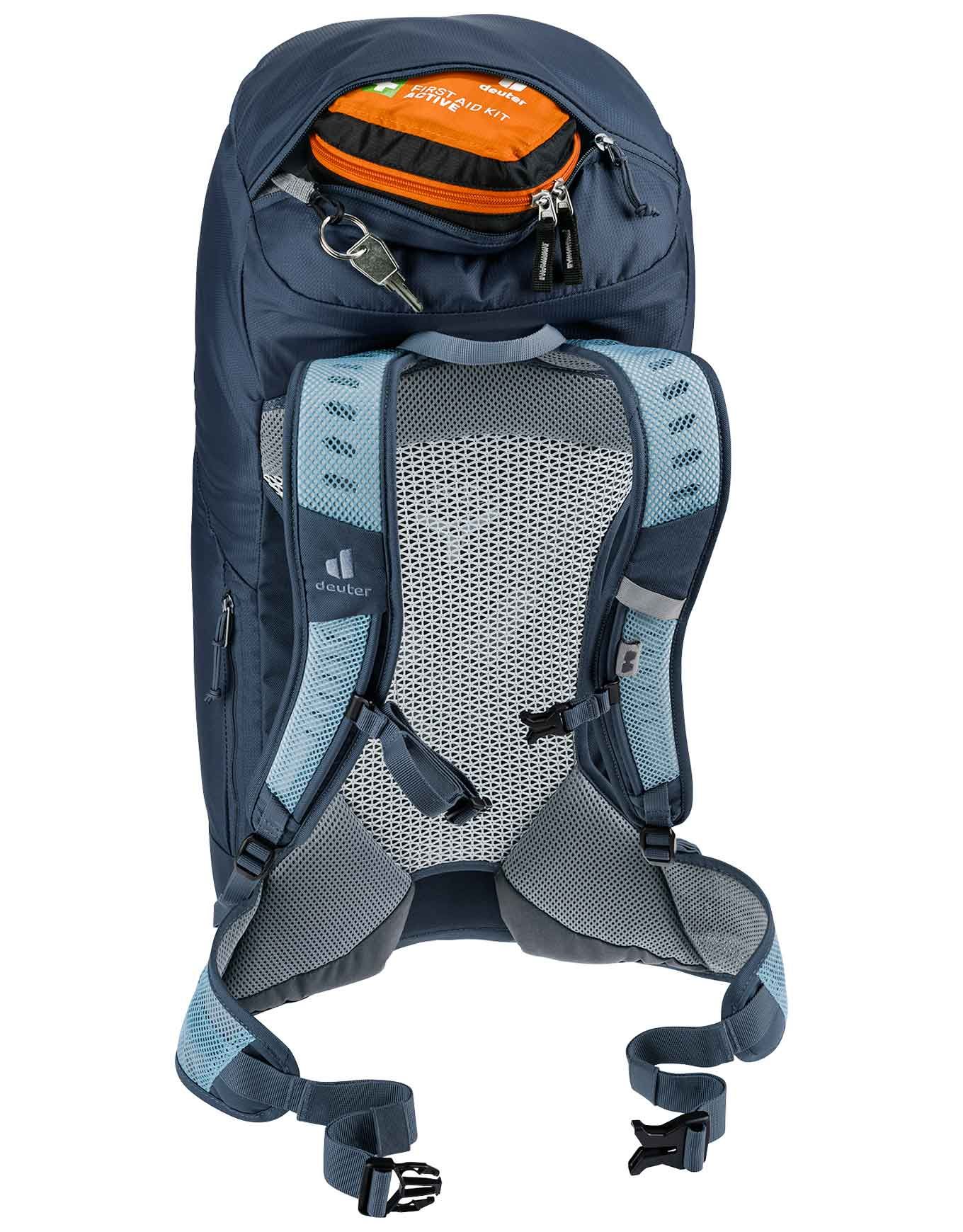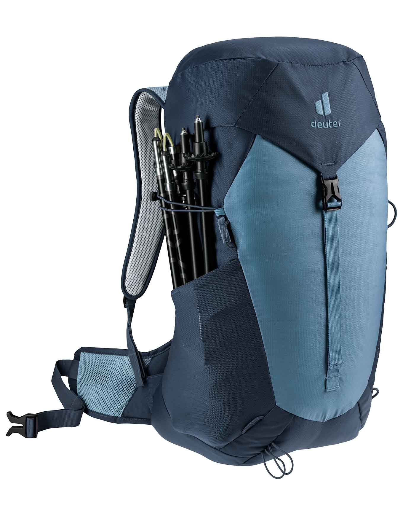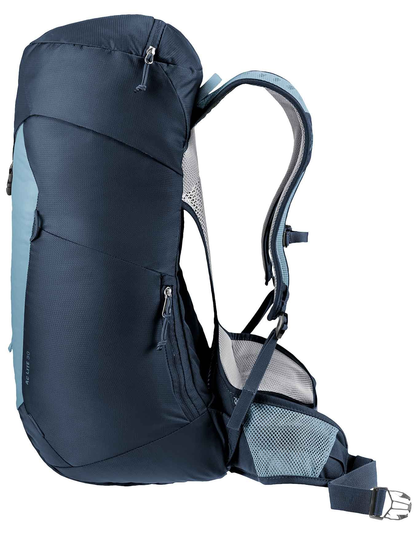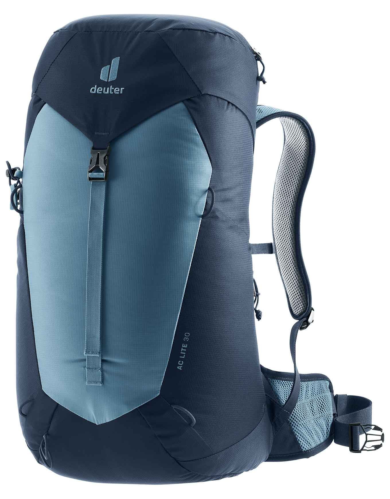 Sac à dos de randonnée Deuter AC Lite 30 Atlantic Ink pour homme, volume 30 L avec dos filet Aircomfort offrant une ventilation maximale et une réduction de la transpiration de 25 %. Son cadre flexible en acier à ressort, bretelles ergonomiques et sangle abdominale assurent un confort durable et une bonne répartition de la charge. Complet : attaches bâtons, housse anti-pluie amovible, poche latérale aérée, poche rabat et compartiment pour vêtements mouillés.