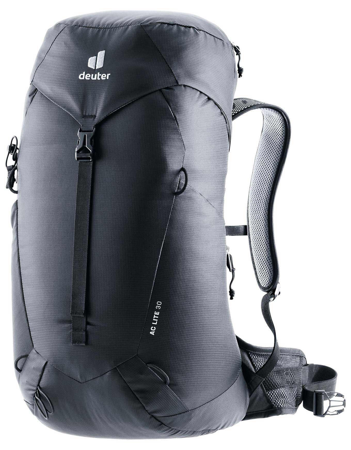 Sac à dos de randonnée Deuter AC Lite 30 Black homme, dos filet Aircomfort ventilé réduisant la sudation de 25 %, bretelles ergonomiques, sangle abdominale, housse pluie, attaches bâtons, 30 L.