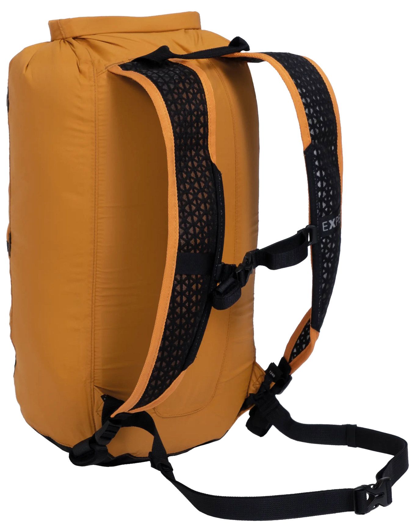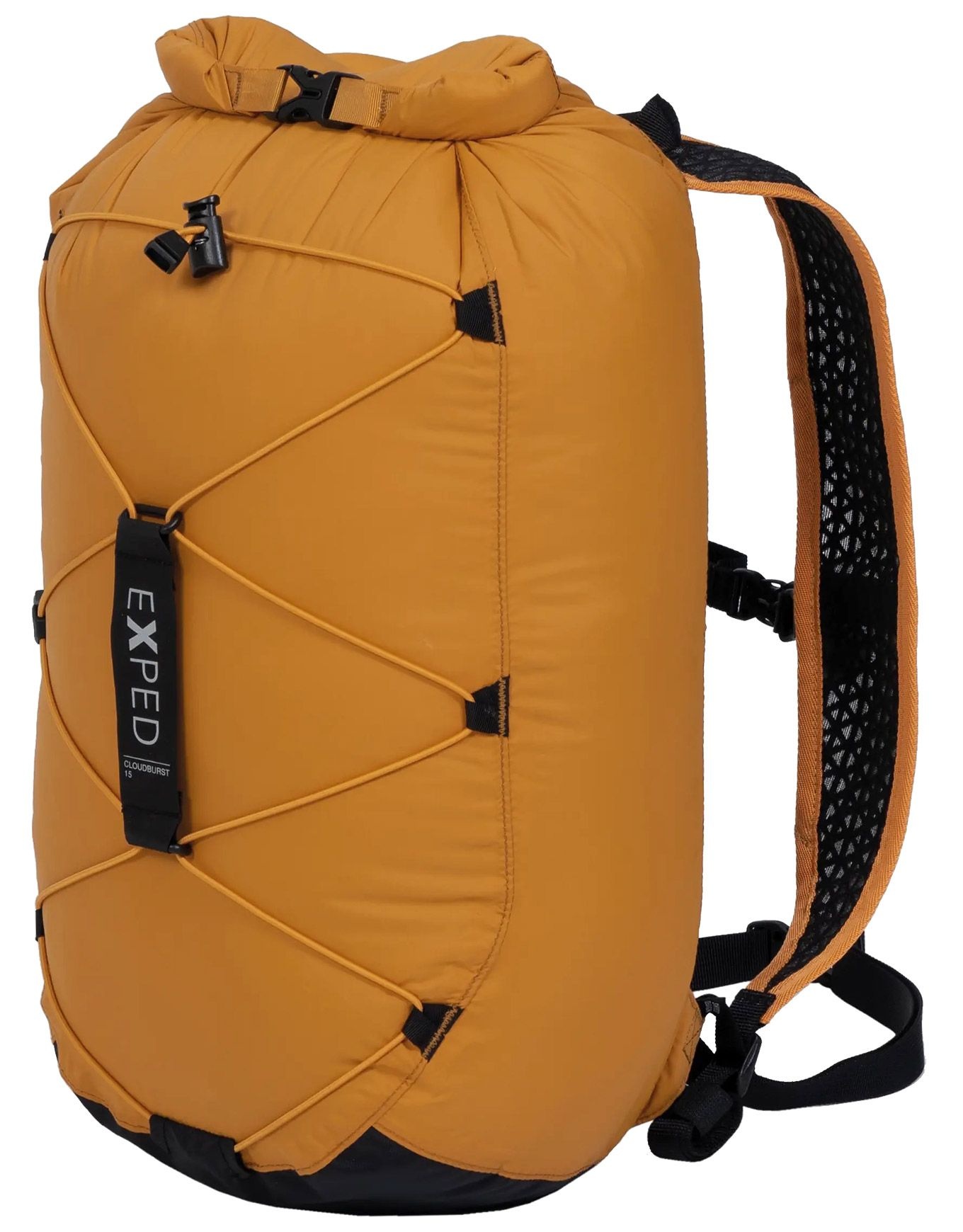 Le sac à dos étanche Cloudburst 15 Gold d’Exped, volume réglable 15 L, poids minimal, offre imperméabilité 7000 mm, bretelles rembourrées et sangle abdominale pour le confort en rando, vélo ou activités aquatiques.