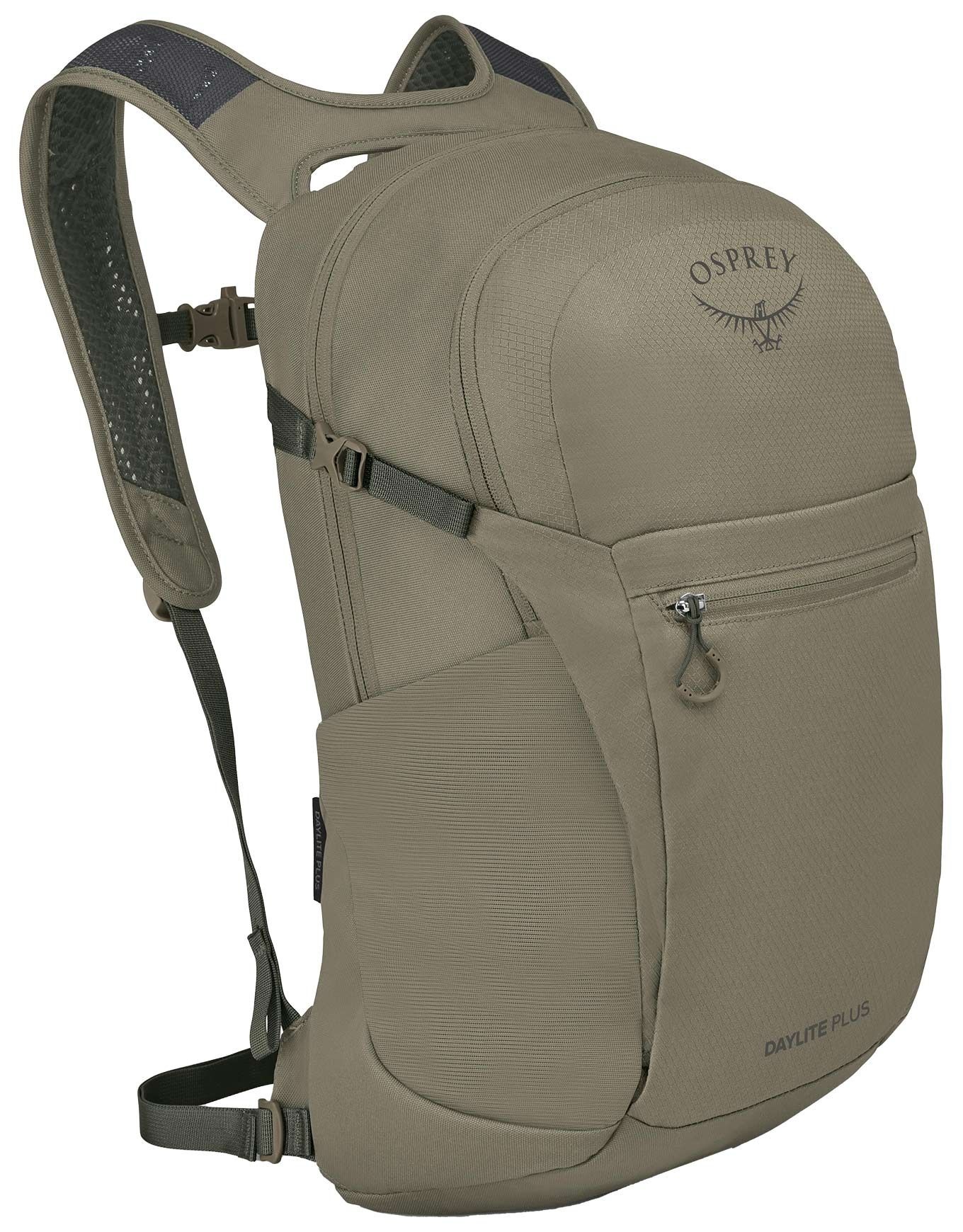 Sac à dos de randonnée journée Osprey Daylite Plus 20 L en coloris Concrete Tan, léger et compact, avec poche ordinateur/tablette, organiser intérieur, poche eau et fixations externes pour veste ou casque.