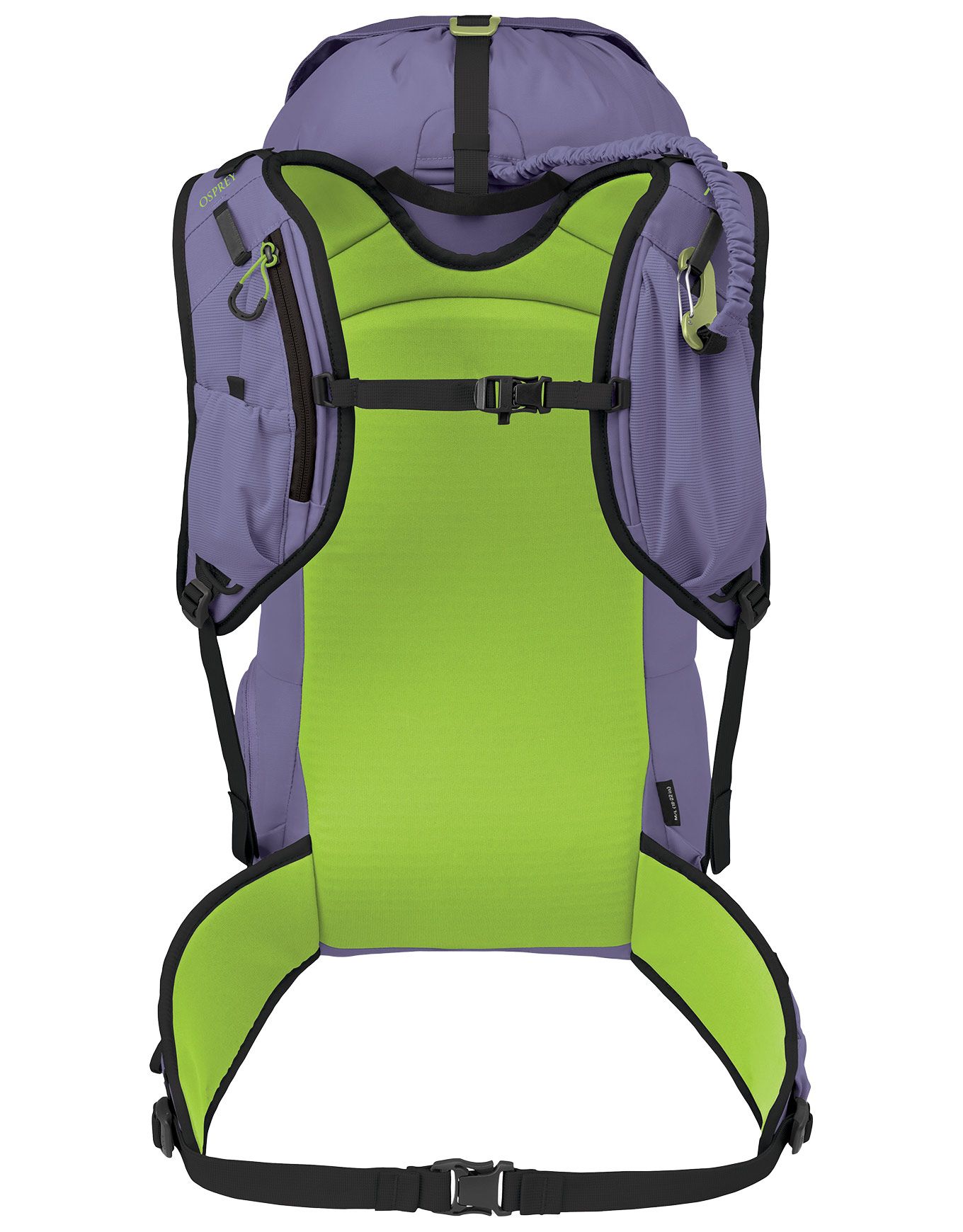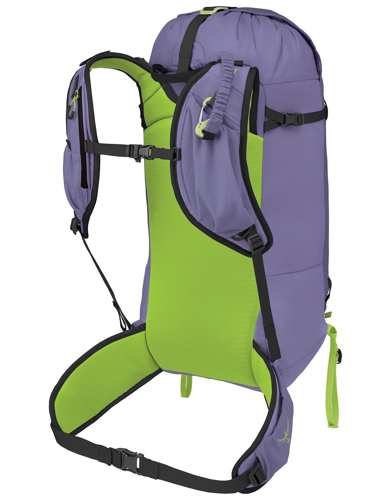 L’attache et le détachement des skis s’effectuent rapidement grâce aux porte-skis, utilisables sans retirer le sac ; ces derniers peuvent être retirés lorsqu’ils ne servent pas. Des boucles supplémentaires sont prévues pour fixer piolets ou bâtons de marche.
