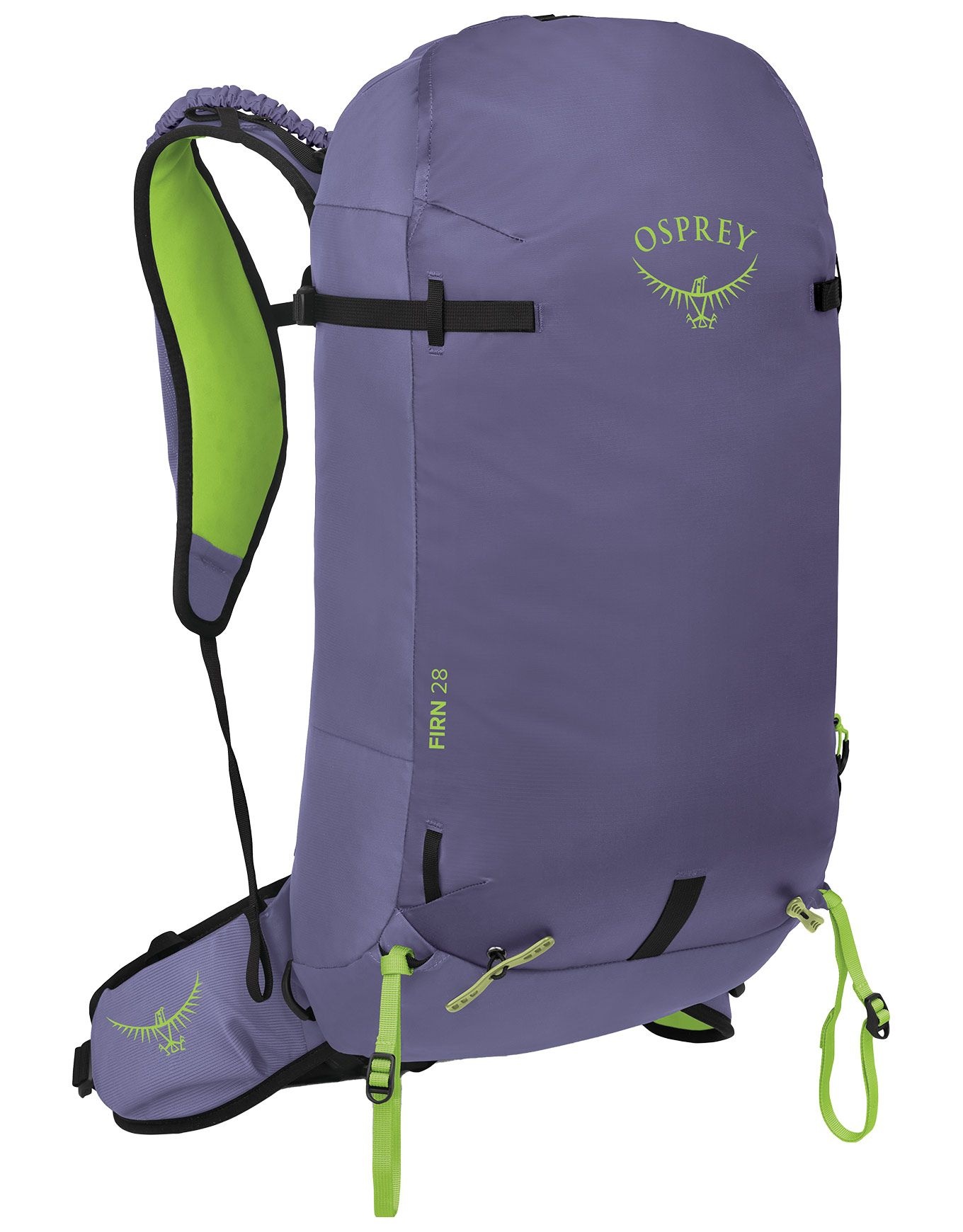 Le sac à dos de ski de randonnée Osprey Firn 28 Euphoria Purple, léger et stable, offre ajustement anatomique, porte-skis rapides, compartiments crampons, casque, lunettes et sécurité avalanche.