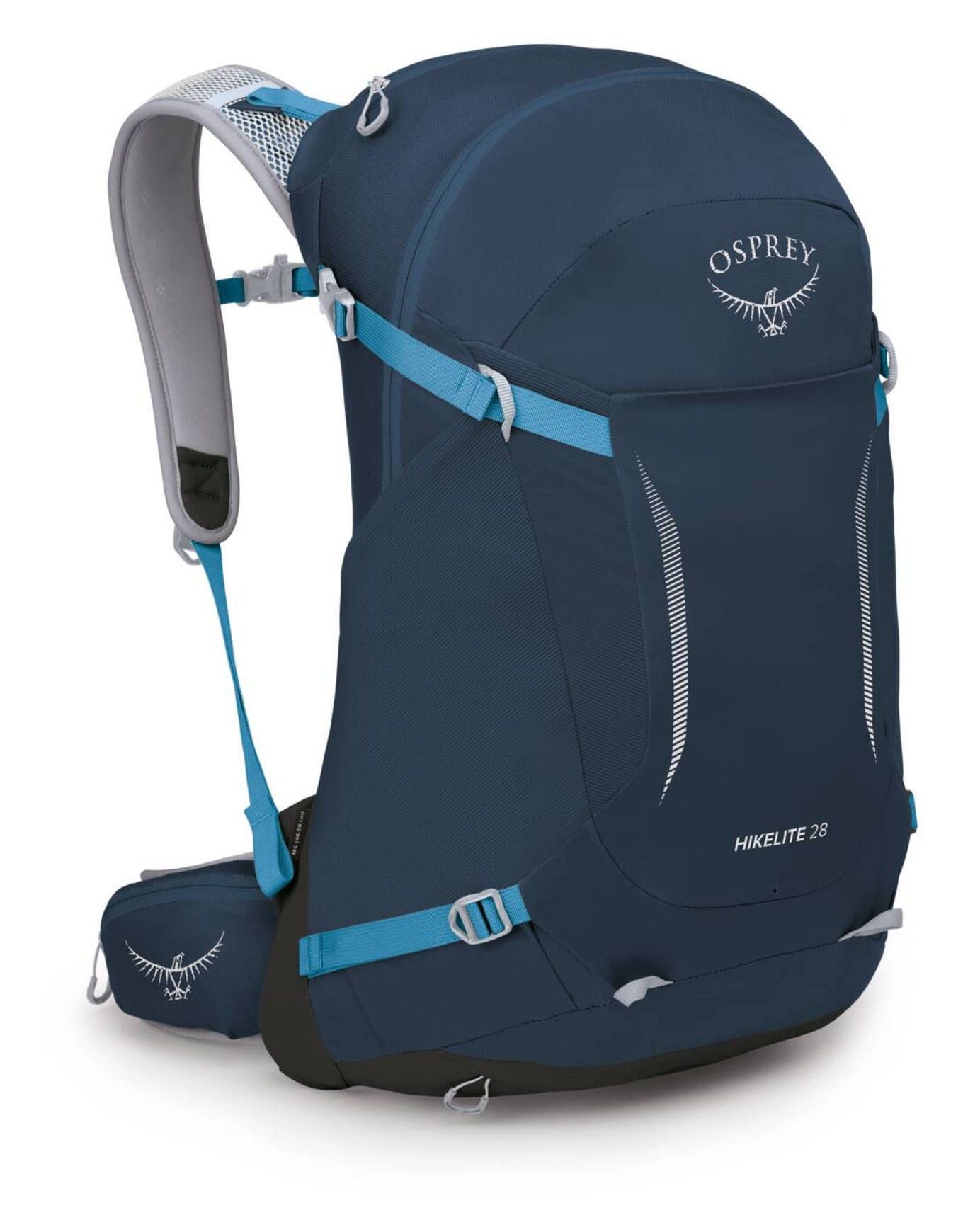 Sac à dos de randonnée Osprey Hikelite 28 Atlas Blue, 28 L, unisexe, avec housse pluie intégrée, panneau dorsal AirSpeed ventilé, pochesses latérales stretch et porte-bâtons, idéal pour sorties journalières.
