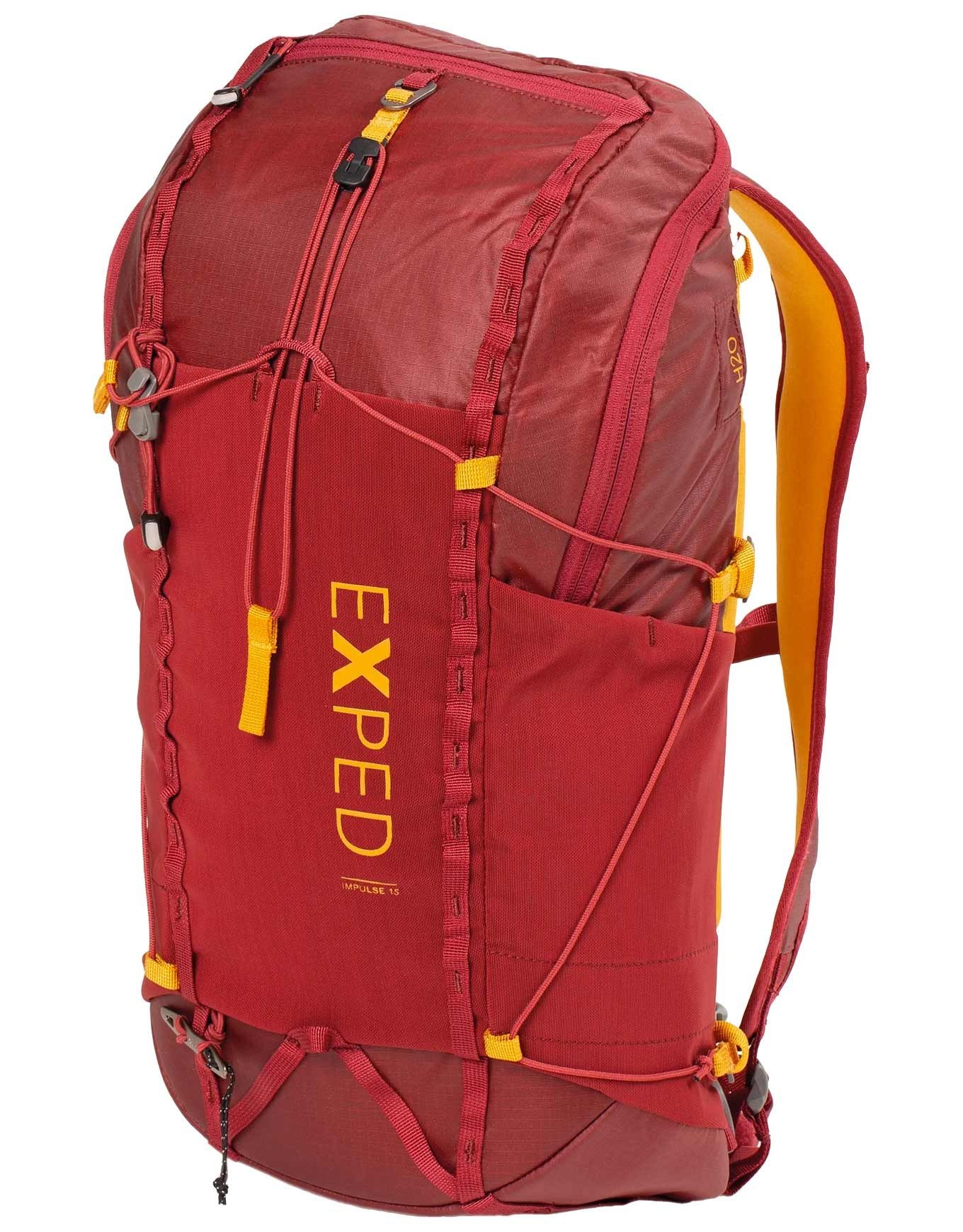 Sac à dos de randonnée journée Exped Impulse 15 Burgundy, polyvalent vélo, alpinisme, via ferrata. Ouverture grand angle, poche zippée dessus, compatibles hydratation, bretelles rembourrées et silhouette ergonomique pour un confort optimal.